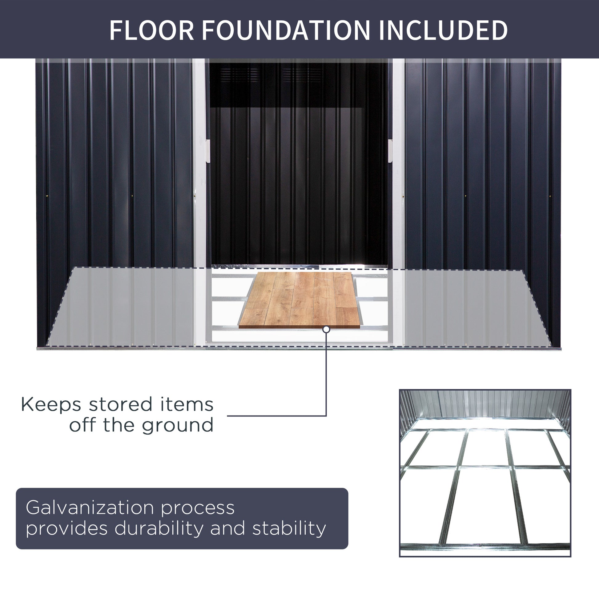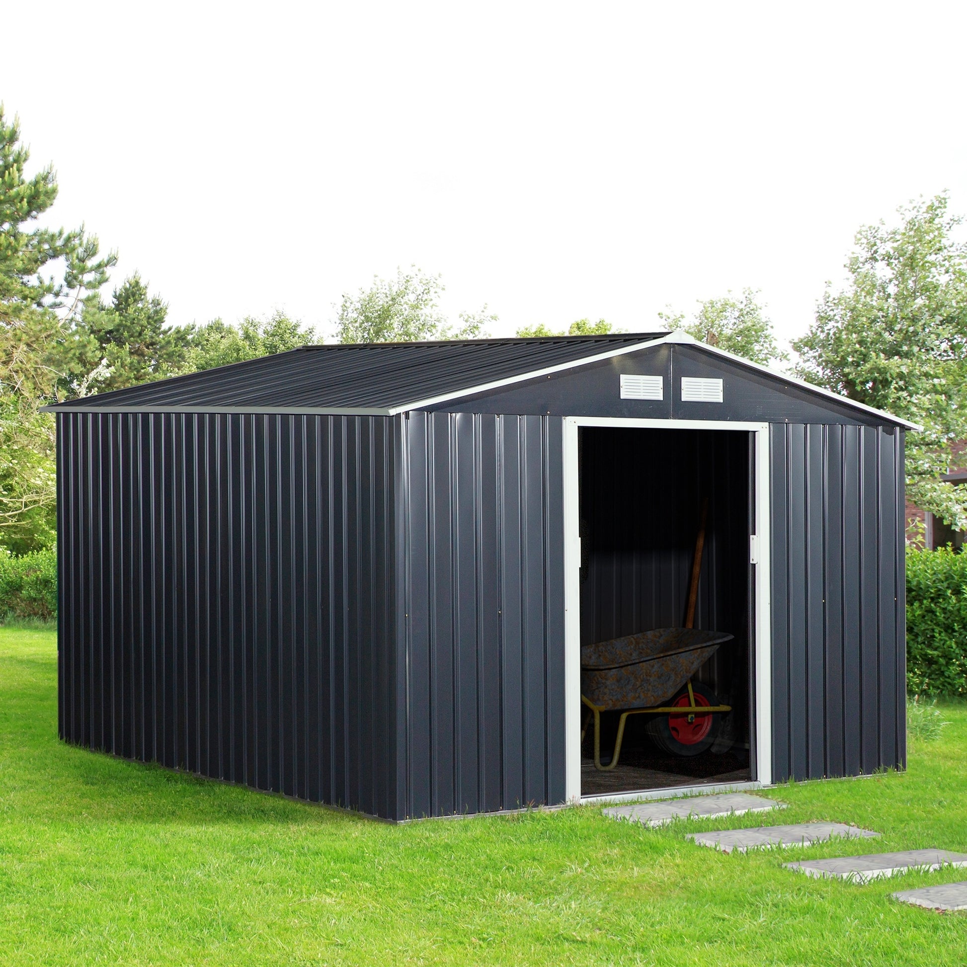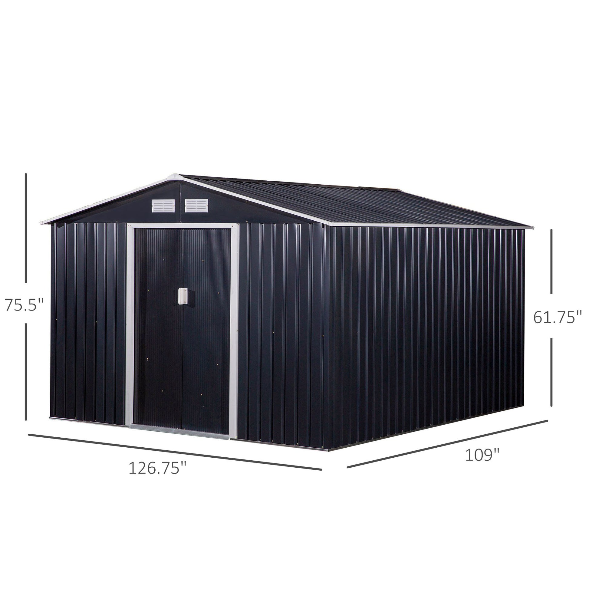 US Local 11' X 9' Metal Storage Shed, Garden Tool House With Double Sliding Doors, 4 Air Vents For Backyard, Patio & Lawn, Dark Gray
