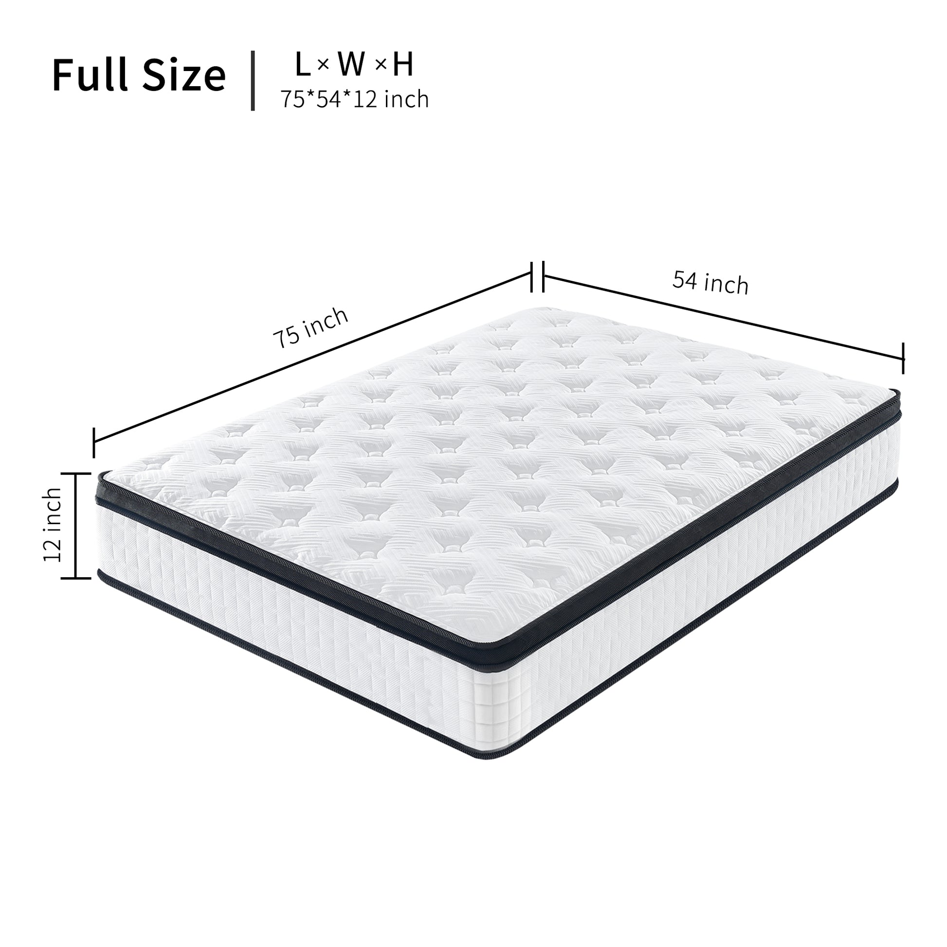 US Local 12 Inch Hybrid Mattress Individual Pocket Spring Memory Foam Knitted Cover CertiPUR-US White
