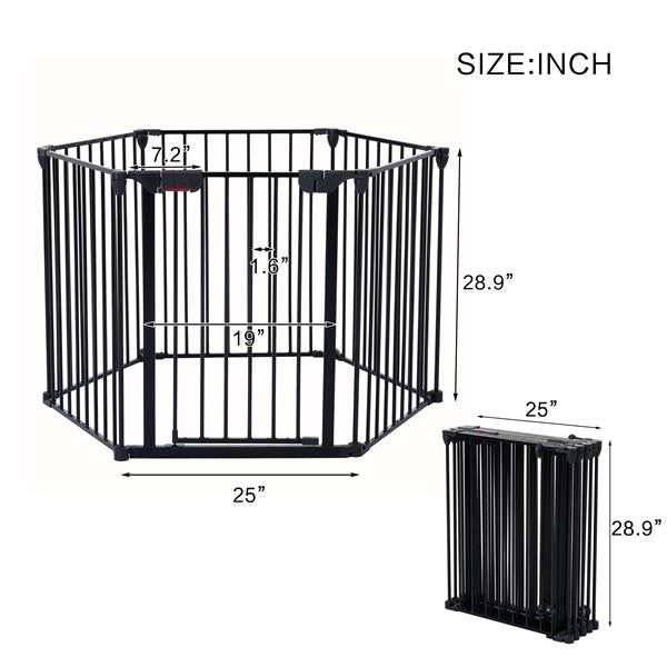 4-IN-1METAL SAFETY GATE: 1. Pet Gate - It can be used as a freestanding pet gate when you set it up as a circular enclosure; 2. Safety Fence - Suitable to use around fireplaces, grills, wood burning stoves, Christmas tree, etc. 3. Play yard: Set up sectioned off areas in your home for your toddlers or pets; 4. Barrier: Solid construction make this a great option for creating room dividers; 5. Baby Gate - Great for wide spaces, angled openings, hallway, doorway or bottom of stairs
