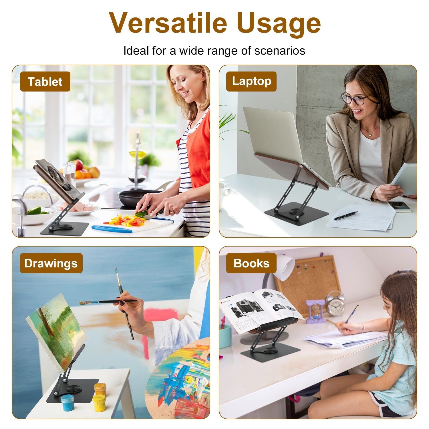 - *Versatile & Practical Stand*: This height adjustable book holder is multifunctional,not only great to hold your novel,cookbook,or textbook for reading,but also suitable for holding your music sheet,drawings,tablet,laptop and so on when you're playing guitar, writing, drawing or working. Provides you with optimal comfort and convenience. Ideal for various settings, including study, classroom, library, music room, kitchen, office, and more.