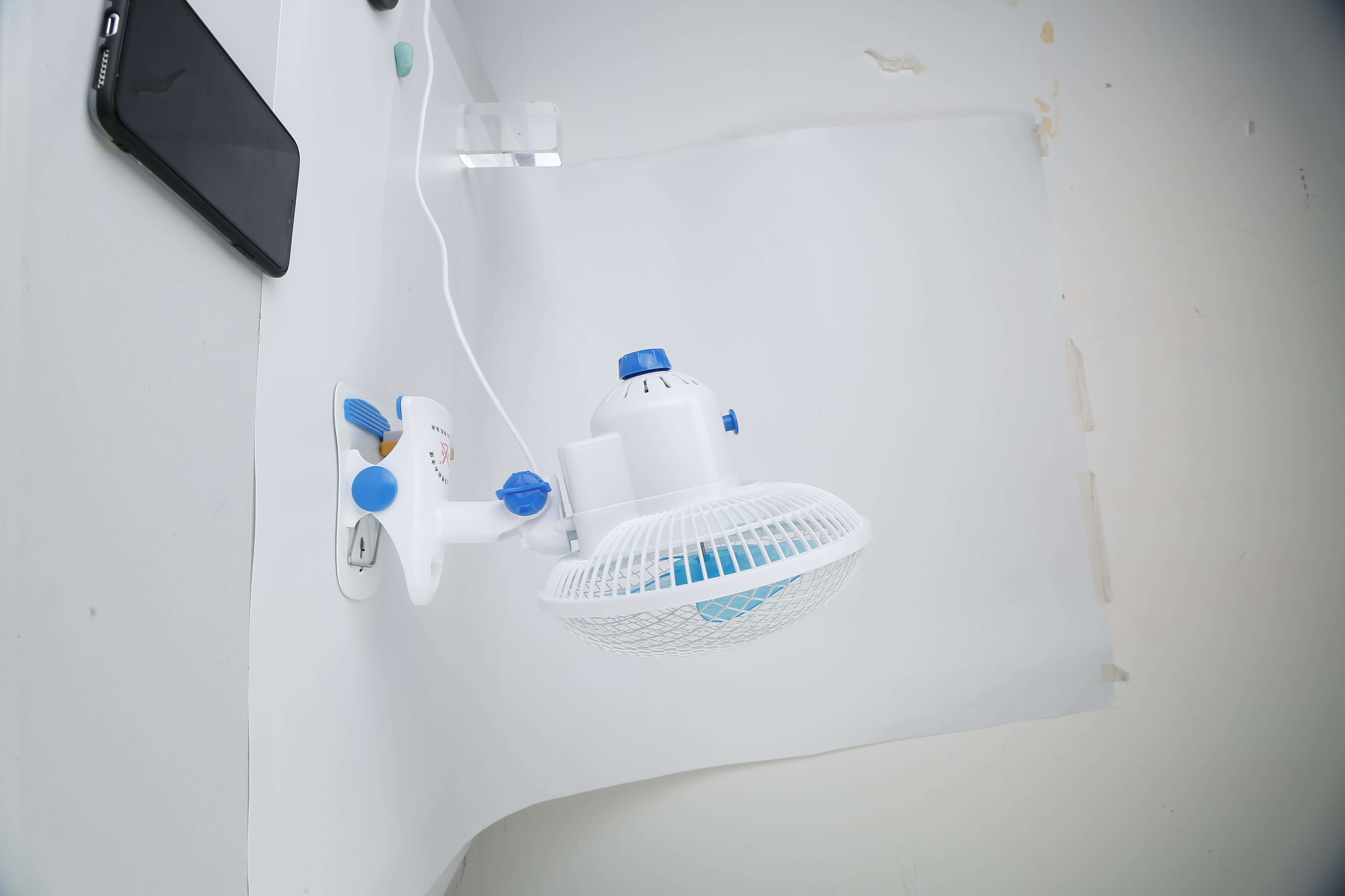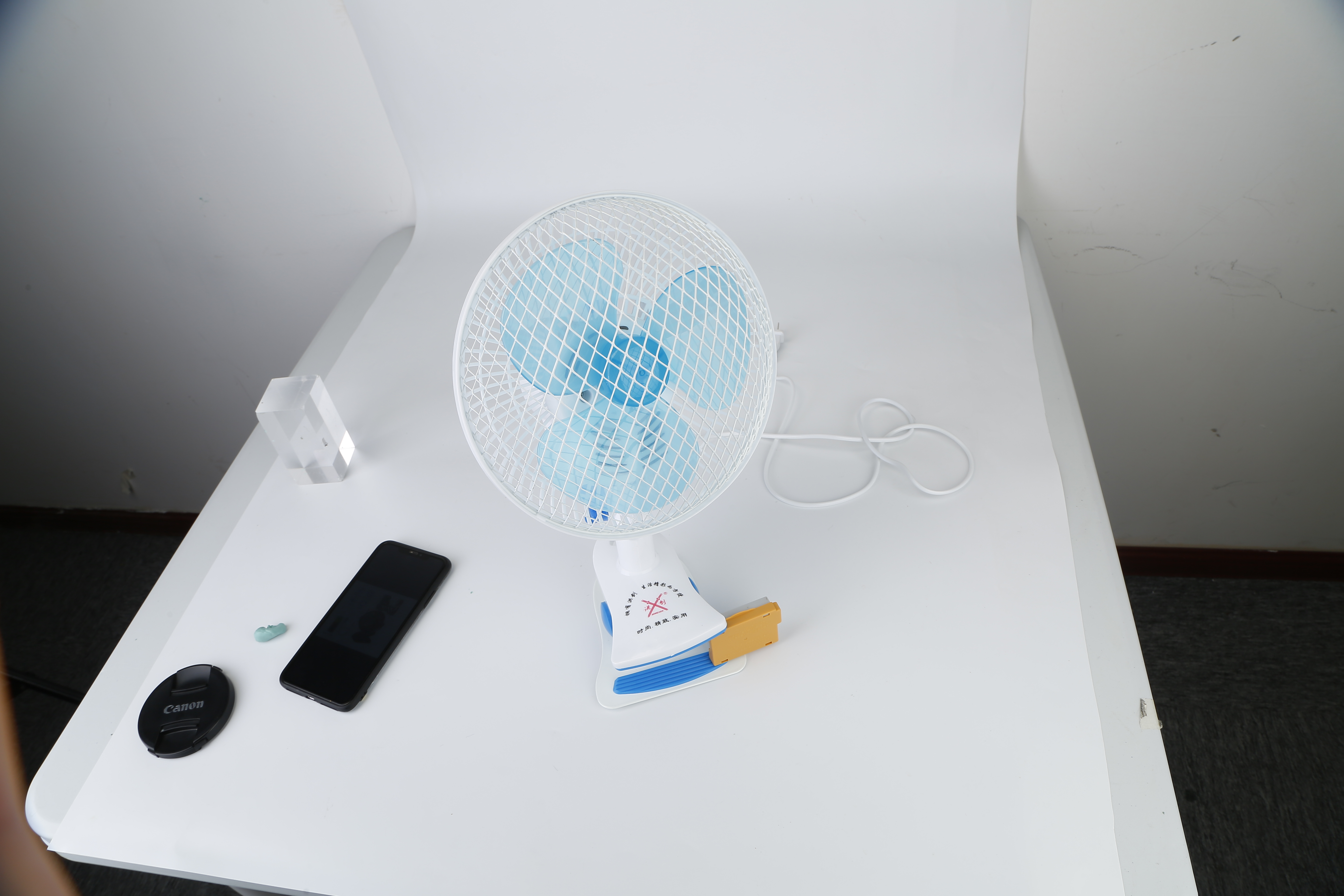 - *Three Placing Methods*: With an anti-skid iron base,and a loop on the base,you can put the fan on your desk or table,or hang it on the wall with a nail or hook. Besides,you can also clip the fan on any bar or desk with its clamp whose max opening width is 2.5in.