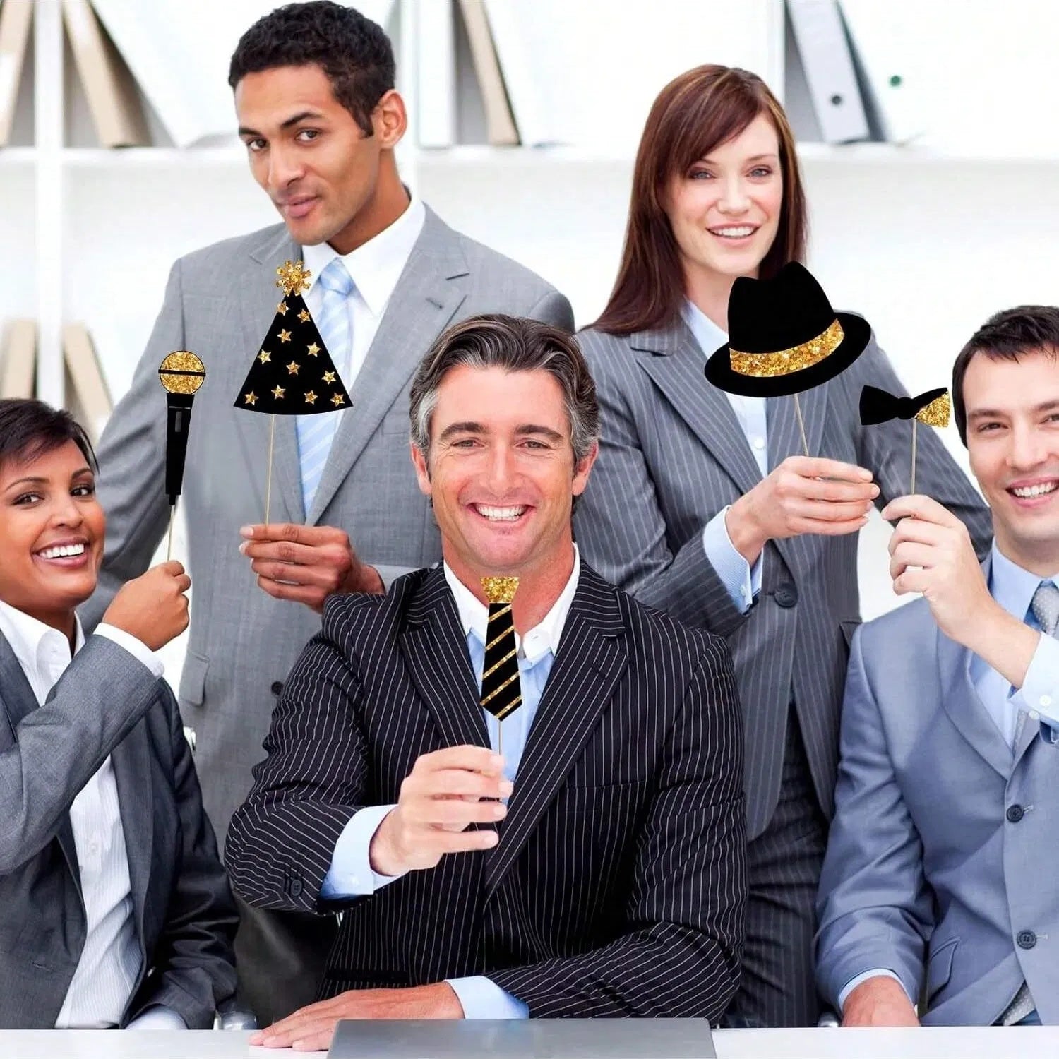 US Local 24 Pieces Party Photo Booth Props For Birthday Weddings Graduation Prom Party Supplies Mix Of Hats, Lipstick, Tie, Crowns Golden,Christmas