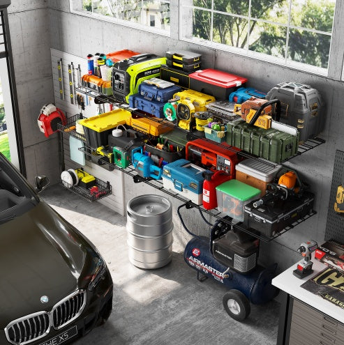 - LARGE SIZE AND HIGH LOAD: This 2*4ft hanging wall rack is made of high quality metal, each tier can provide 250lbs of extra heavy load capacity. Please note that the wall rack must be mounted on a concrete or wood wall.