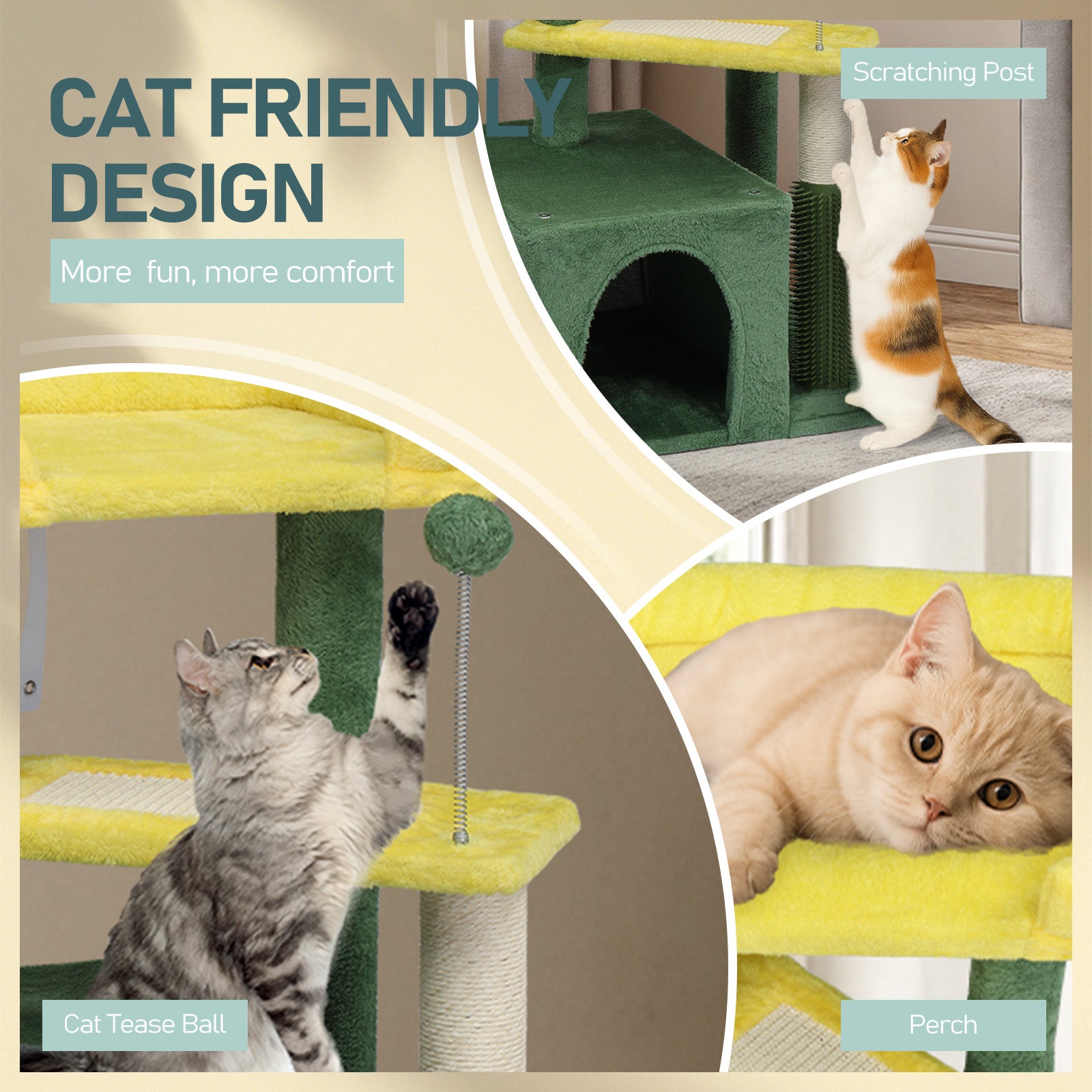 US Local 27.5in Cat Tree, Multi-level Cat Tower with Cat Scratching Post and Pad, Cozy Cat Condo, Padded Top Bed for Kittens and Indoor Cats, Yellow & Green