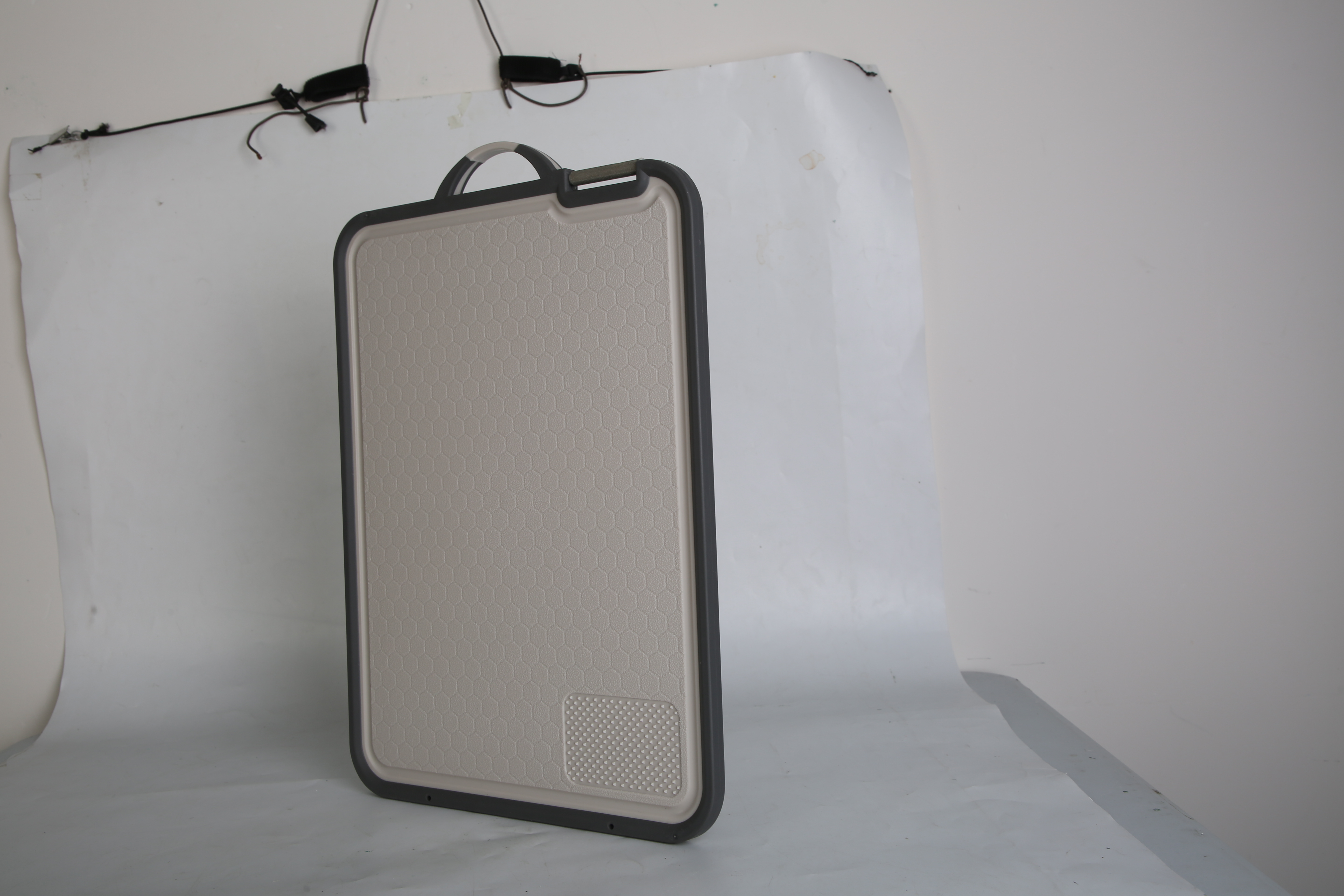 - *2-IN-1 Double Sided Cutting Board*: Designed with 2 sides with different material to cater for various daily needs. The 304 stainless steel side with mesh design is suitable for cutting raw meat. The mesh design reduces scratches on the panel when cutting. The PP side is great to cut vegetables and fruits. Independent two side usage ensures no cross-contamination,healthy and odorless.
