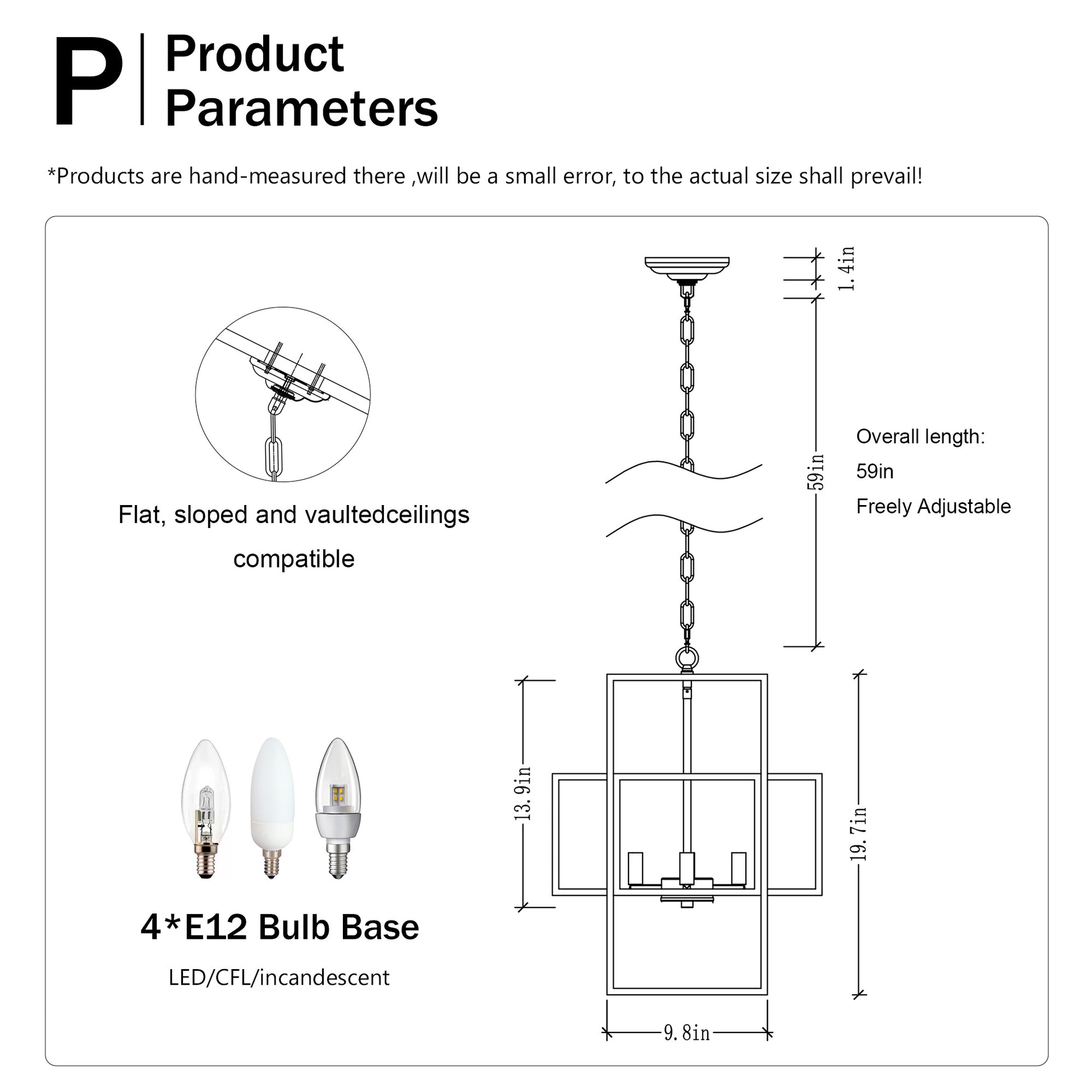 - ¡¾Bulb Type¡¿ The kitchen light fixtures is equipped with 4*E12 socket base. The recommended maximum power of each bulb is 25W.