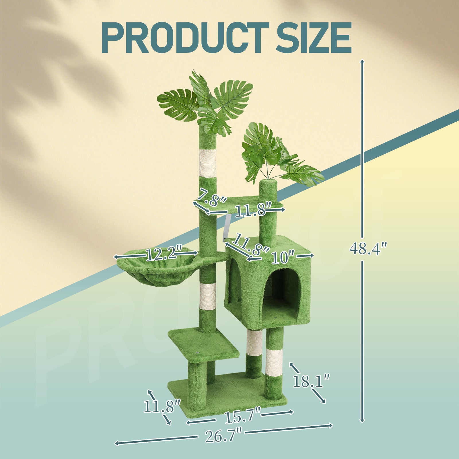 US Local 48in Plush Cat Tree with Leaves, Multi-level Cat Tower with Cat Condo, Cozy Hammock, Sisal Scratching Posts, Large Cat Pet Activity Center for Indoor Cats, Green