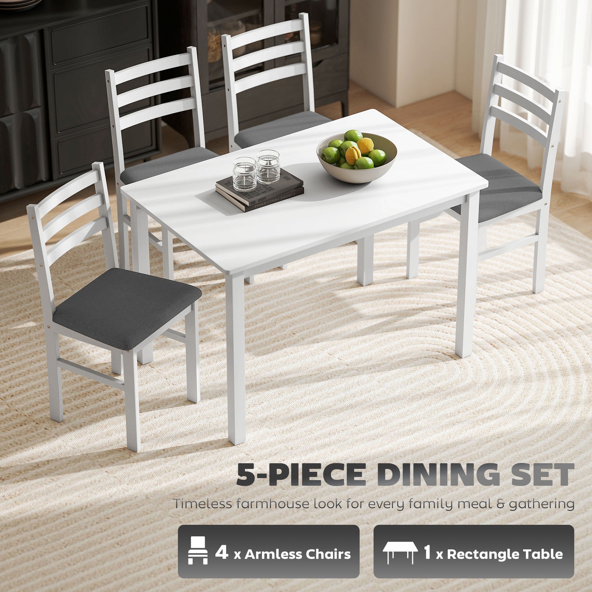 US Local 5-Piece Small Kitchen Table Set For 4, Farmhouse Dining Table Set With Upholstered Chairs And Rubber Wood Legs, White