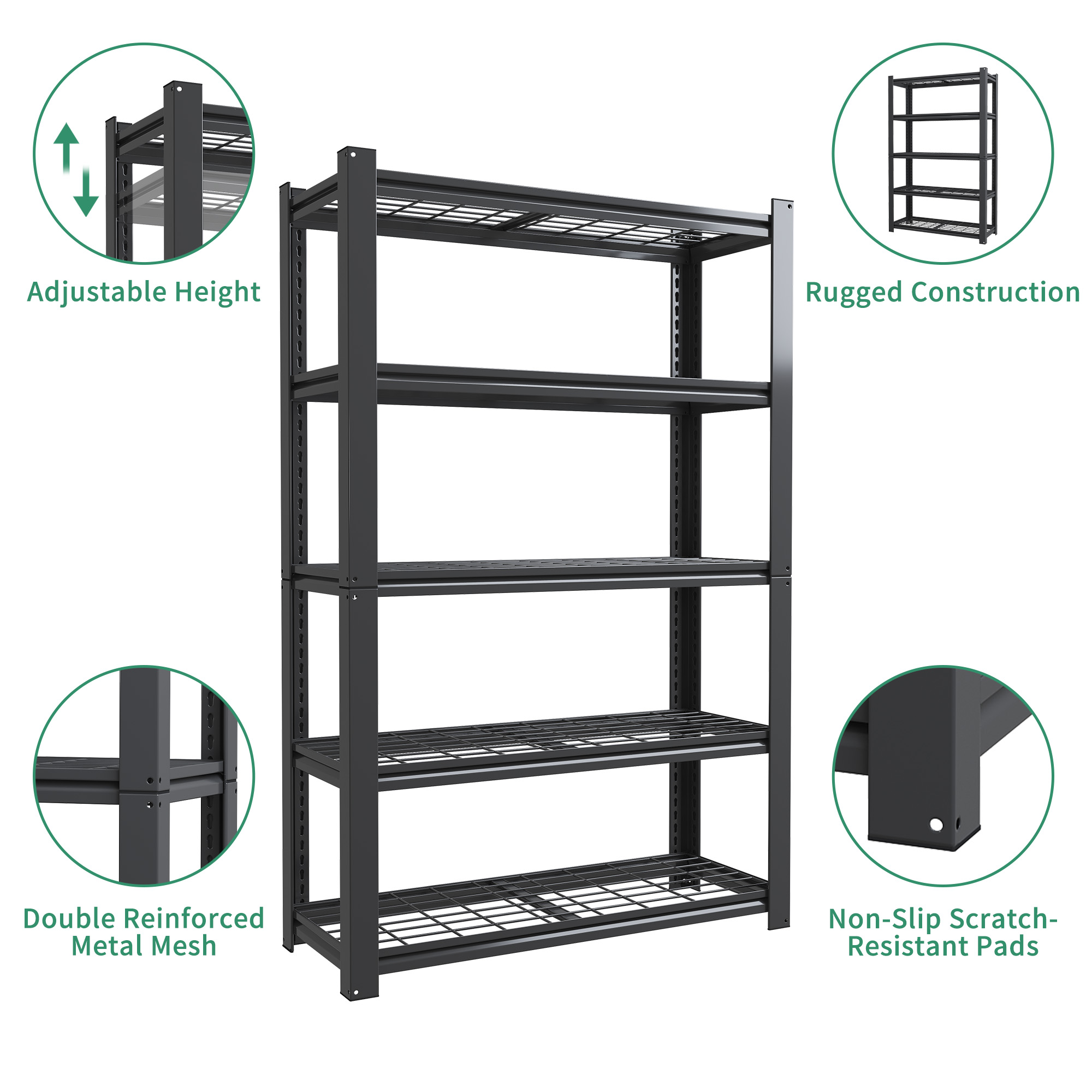 US Local 5-Tier Adjustable Heavy Duty Shelving Metal Mesh Storage Rack 2000 Lbs Loading Capacity - Metal Shelf Organizer For Pantry, Garage, Black