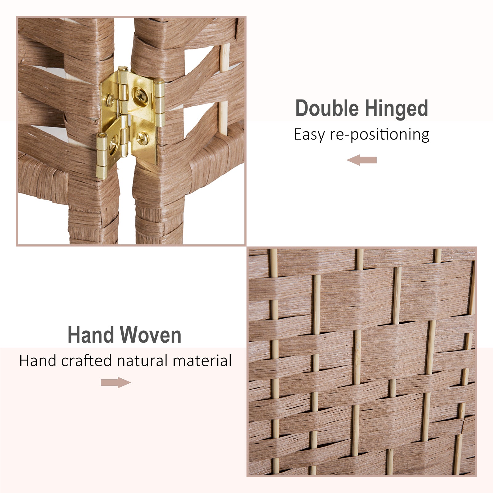 US Local 6 Panel Wicker Room Divider 6' Tall Privacy Screen Natural