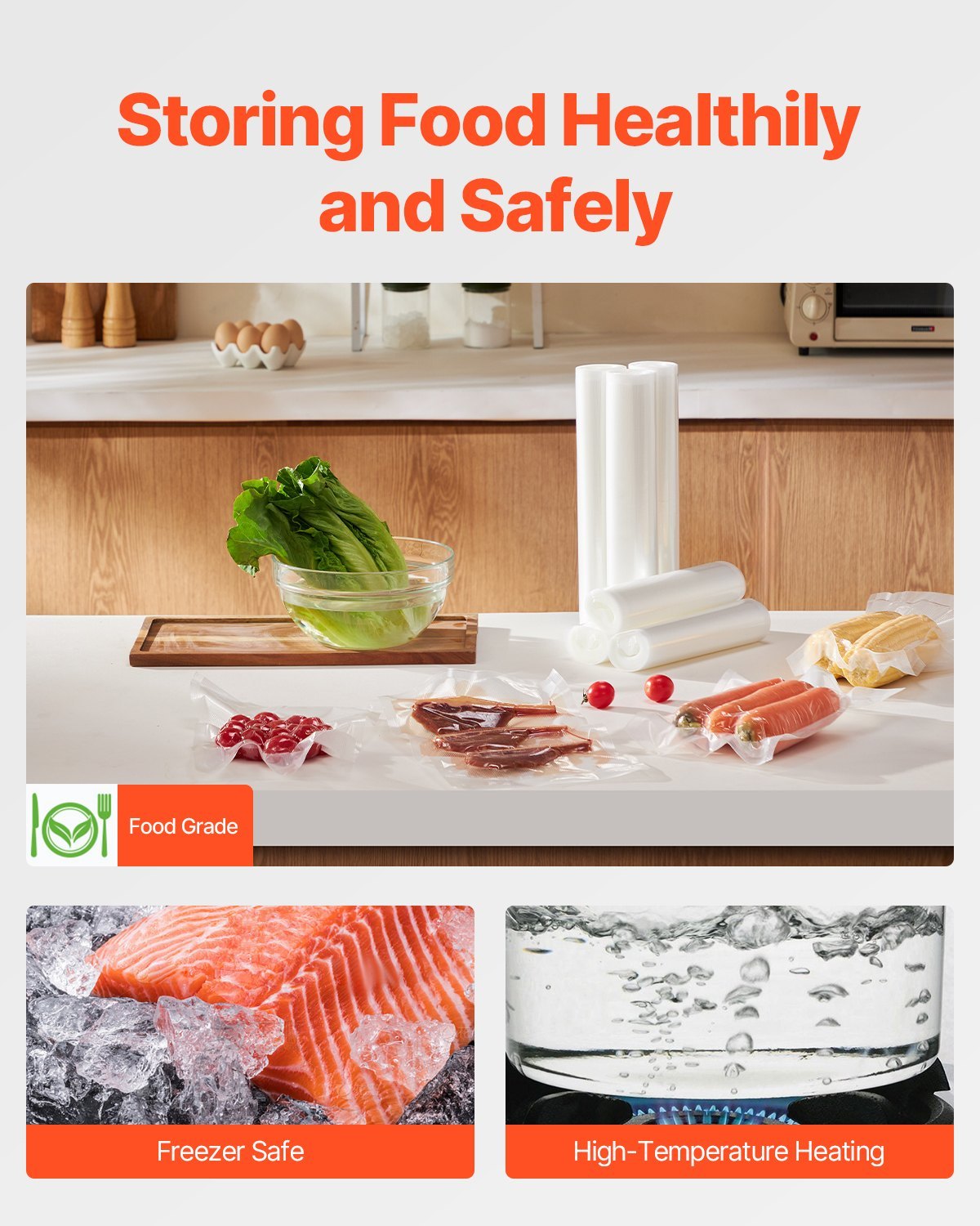 US Local 6 Rolls Vacuum Sealer Bags 11 In X 20 Ft & 8 In X 20 Ft Customizable Non-BPA Bag
