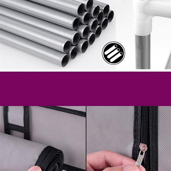 US Local 6-story Double Row 12 Grid Non-woven Fabric Shoe Cabinet Gray