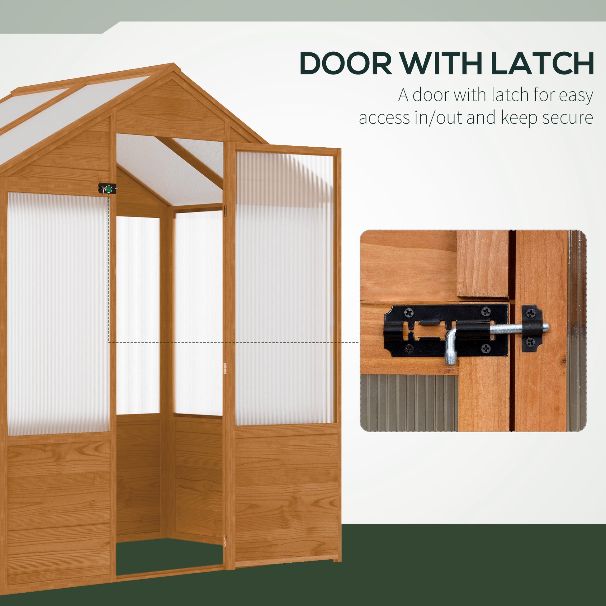 US Local 6x4x7 Polycarbonate Greenhouse, Walk-in Hot House Kit, Hobby Greenhouse With Lockable Door, Level 5 Wind Resistant Wooden Frame, Rustic Brown