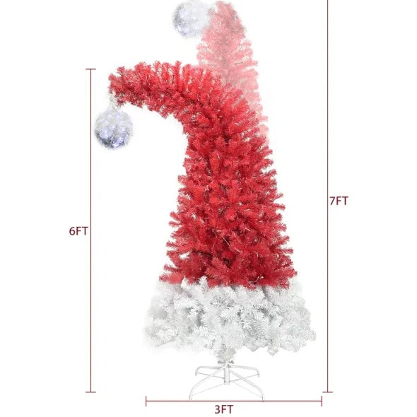 US Local 6FT Hinged Fir Artificial Fir Bent Top Christmas Tree, Xmas Tree Bendable Santa Hat Style Christmas Tree Holiday Decoration,1250 Branch Tips, 300 LED Lights X-mas