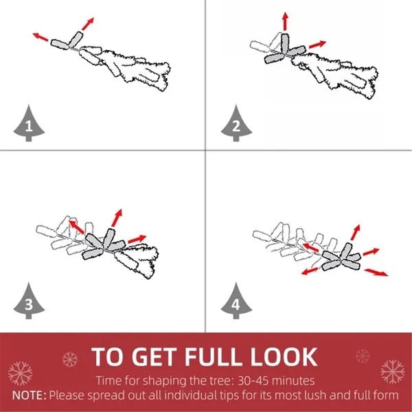 - In order to get a full appearance, please spread out all individual tips to get the best possible look from the tree, suggest you to take 30-45 minutes to shape the tree.