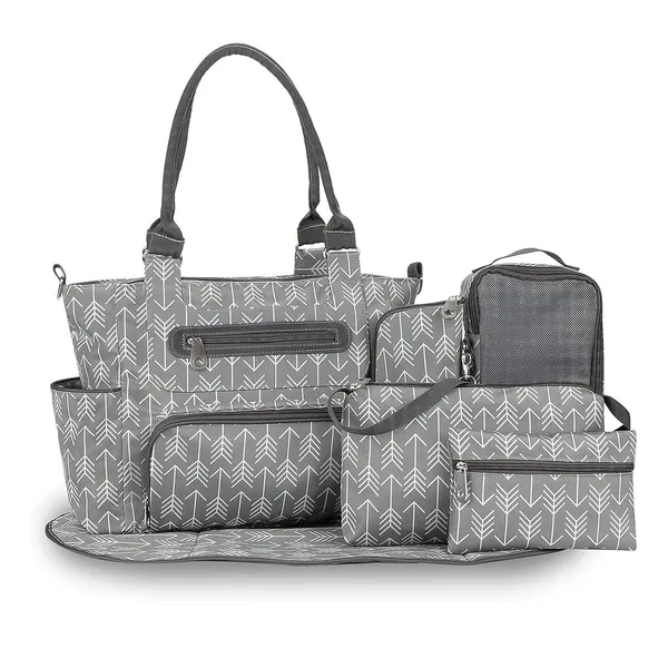 US Local 8Pcs Baby Nappy Diaper Bags Set For Mom Dad Mummy Handbags Multifunctional Diaper Changing Bags With Bottle Bag Mesh Bag Purse Diaper Pad 2 Burp Cloths 2 Hook Straps
