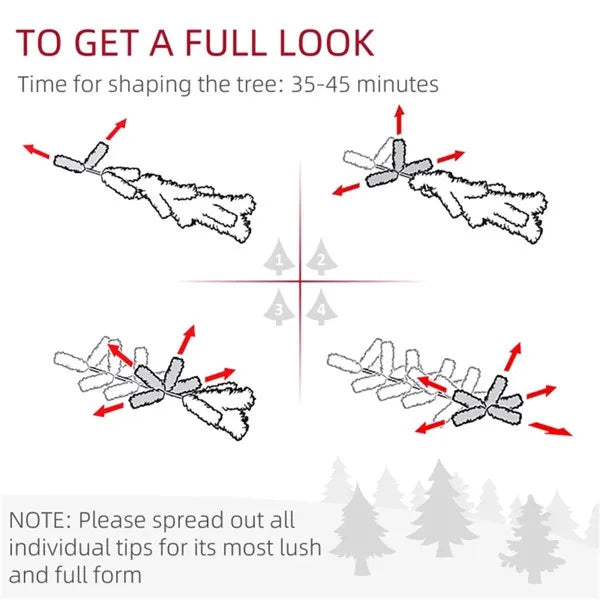 - In order to get a full appearance, please spread out all individual tips to get optimally possible look from the tree, suggest you to take 45-60 minutes to shape the tree.