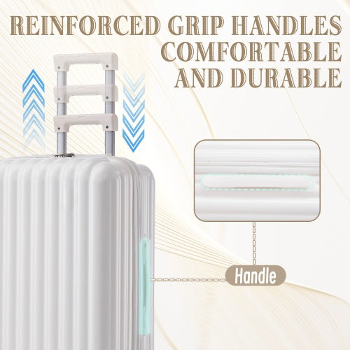 - Modern Appearance£ºThe stylish and smooth vertical stripe design of the rolling luggage makes it more resistant to pressure and wear and brings a good mood to your journey. It includes four molded side feet, they allow the luggage to remain upright even when standing on its side.