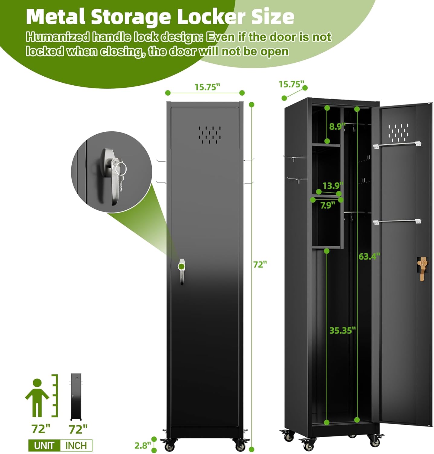 - Installation required: The dimensions of the metal storage cabinet after installation are 71.65"H¡Á15.75"W¡Á15.75"D, providing sufficient vertical space for storing long-handled tools. The overall structure is stable (about 45 pounds), with strong load-bearing capacity, meeting the heavy cleaning needs of professionals or households. If you encounter any problems during installation, you can ask the after-sales team for support.