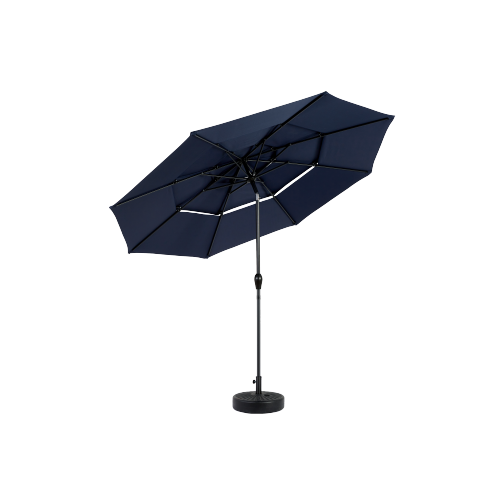This market umbrella has a crank mechanism, you can easily open and close the umbrella in a few seconds by rotating the crank handle. No base are included and lightweight.