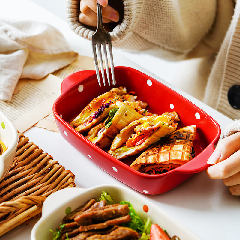 Ceramic Dot Cheese Baked Rice Plate Household Microwave Oven