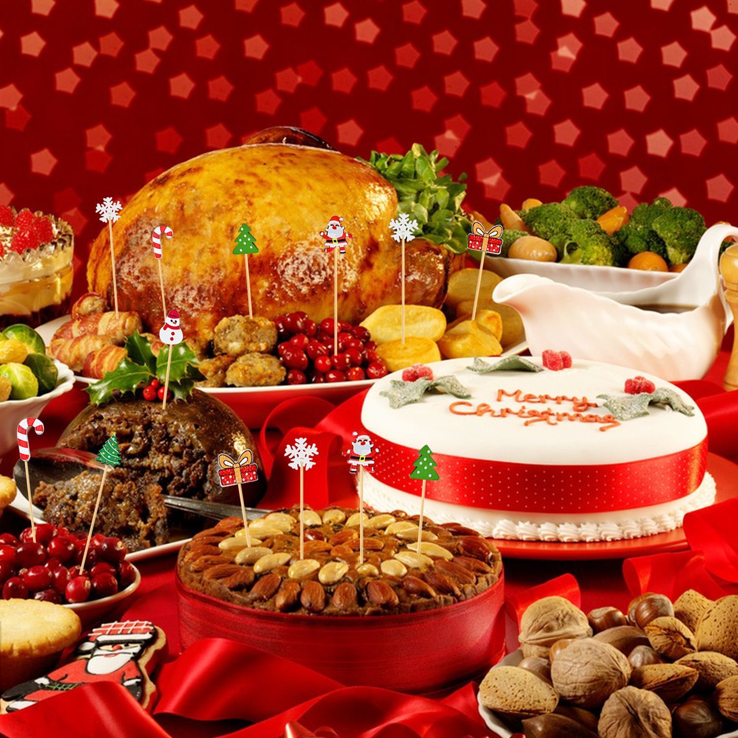 US Local Christmas Cocktail Pick Xmas Tree Snowflake Snowman Santa Claus Reindeer Pattern Sticks Cupcake Fruit Food Appetizer Skewers 4.9 In Bamboo Toothpicks For Christmas Holiday Party Favor Supplies