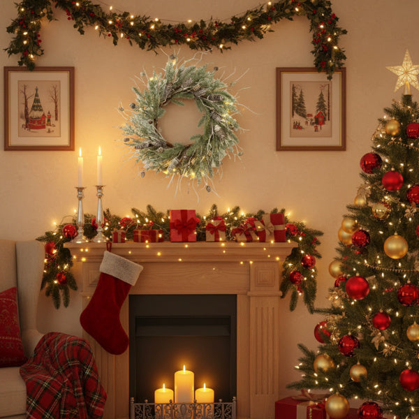 US Local Christmas Pine Wreath Pinecone & Greenery Holiday Door Decoration Pre-Lit Or Natural Style For Festive Home Decor FBA Shipment
