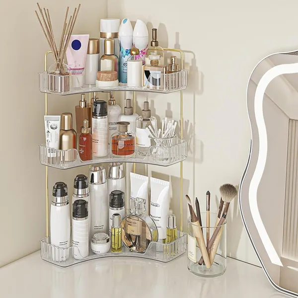 US Local Corner Bathroom Counter Storage Rack 3-tier Bathroom Countertop Storage Rack Cosmetic Storage Rack Dressing Table Perfume Tray