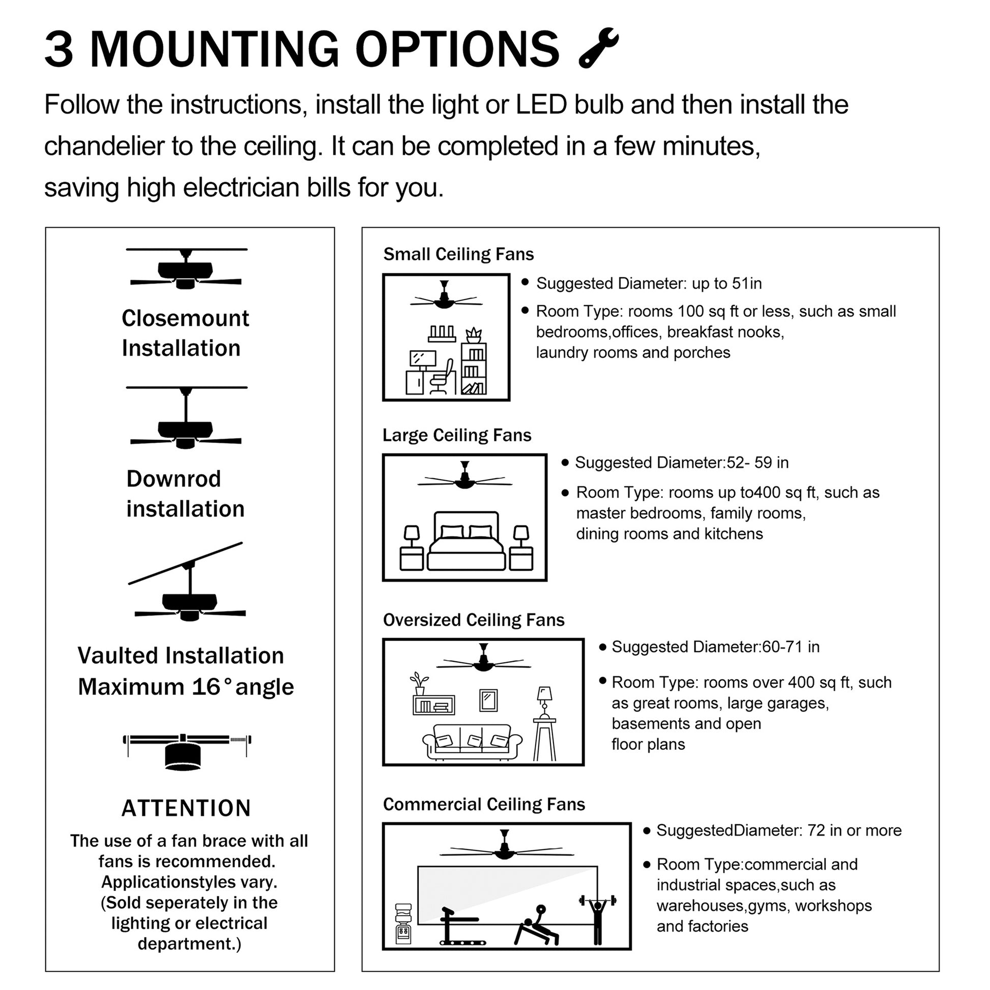 - ¡¾ Strong wind & Reversible motor ¡¿: Chandelier ceiling fan with DC reversible motor can provide powerful even wind and allows you to switch the air circulation mode from downward to upward in different seasons.
