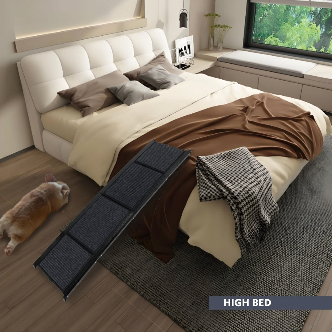 - ¡¾ Four-Fold for Portability & Multifunctional ¡¿: The dog ramp with extra long length of 65" and a width of 17.2". Unlike other dog loading ramps on the market can only be two-fold or three-fold, our dog vehicle ramps can be quadruple folded into a convenient size of 18.3x17.2x5.1". The dog ramp stair is perfect for your dog's entering cars, SUVs, trucks, high beds, and couches