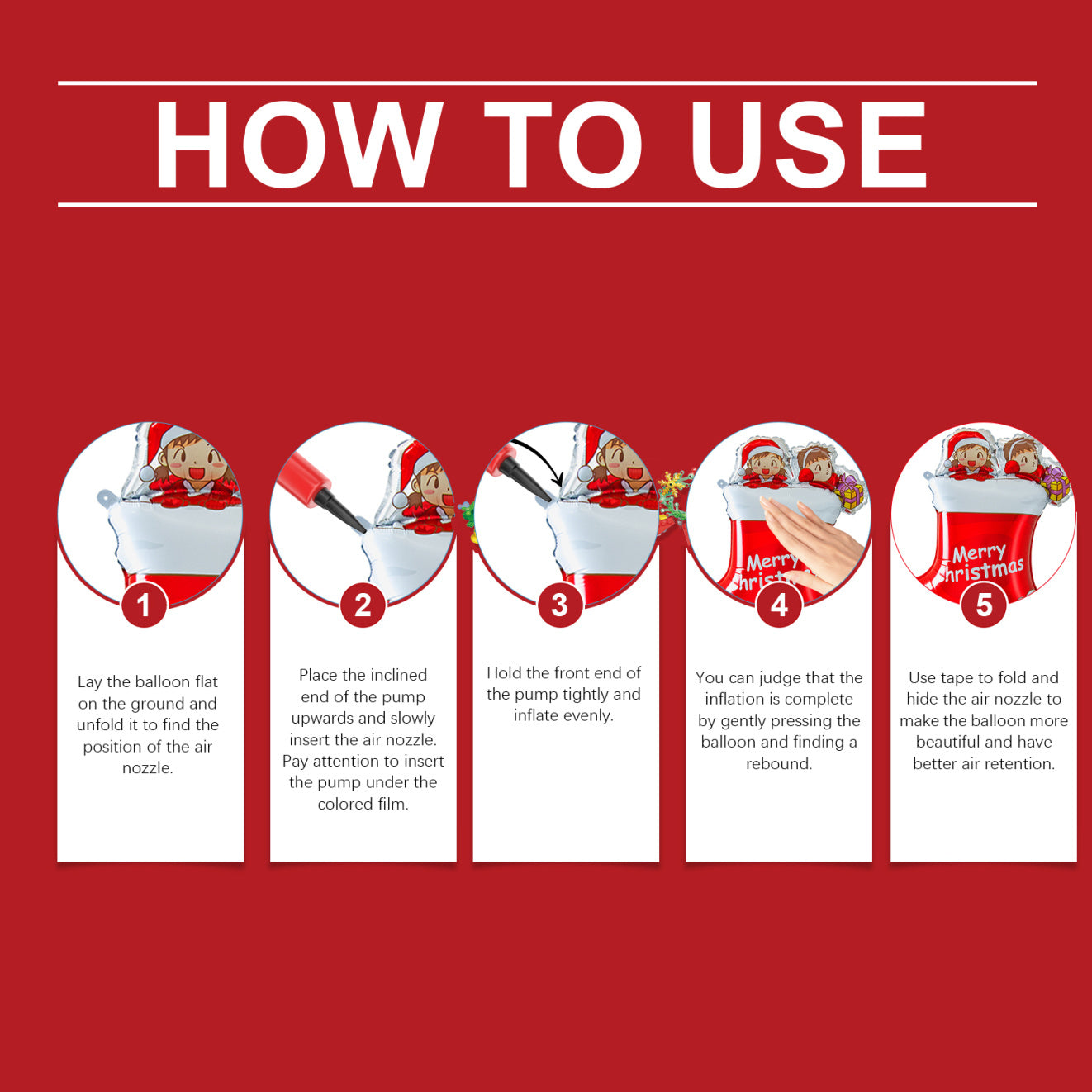 Our Christmas tree balloon contains nylon aluminum foil. This set of balloons consists of nylon aluminum foil material, puncture resistant, can be inflated for a long time to maintain the perfect shape, not easy to leak, suitable for indoor and outdoor use. Classic Christmas shapes such as Santa Claus, elk, snowman and so on. Add a Christmas atmosphere to your home or party. Its use is simple: put the bevel on the front, as you can judge, fold and hide the air nozzle with tape to make the balloon more beautiful, lay the balloon flat on the ground, open it, and find the location of the air nozzle. Take care to insert the gas cylinder under the colored film. Gently press the cylinder, find the restraint, and inflate it. Better air retention. And the material is thick, self-sealing without leakage. It can be kept for a long time and can decorate the house.