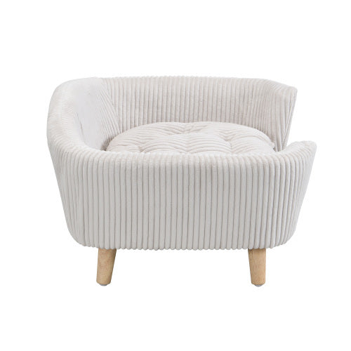 US Local Elevated Dog Bed Frame For Small Dog, Corduroy Pet Couch Bed With Rubber Wood Legs And Supportive Foam, Beige, Easy Assembly