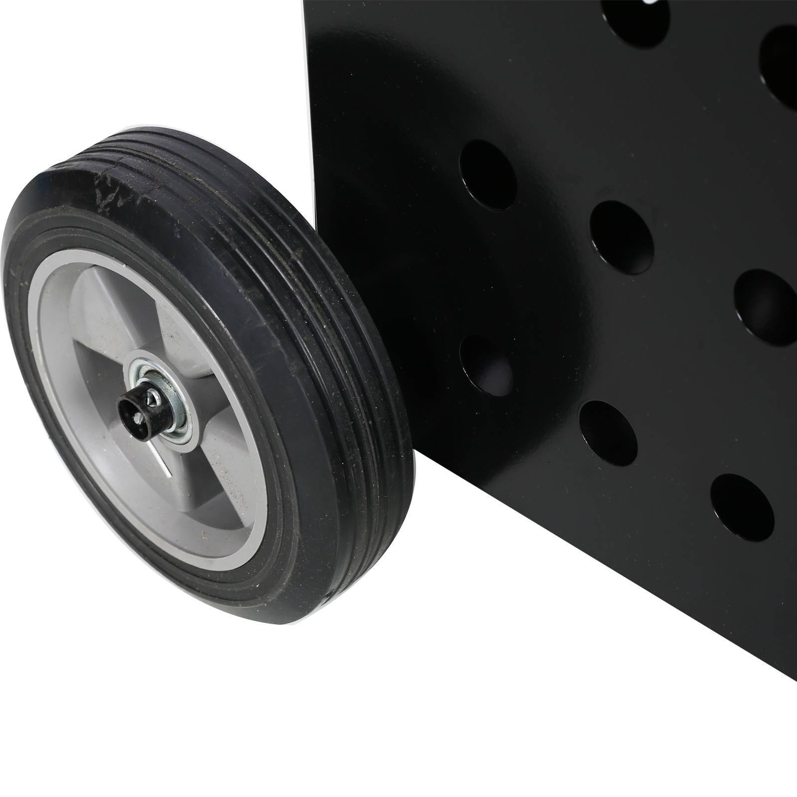 The perforated metal construction makes the carriage stable and durable. You can store and transport up to 200lbs of wood on the carriage, which is even easier due to the smooth running 8 inch rubber wheels.