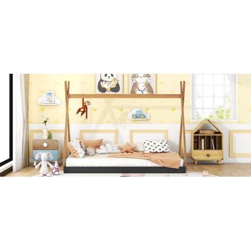 Product Name:Full Size Tent Floor Bed with Triangle Structure, Black+Brown