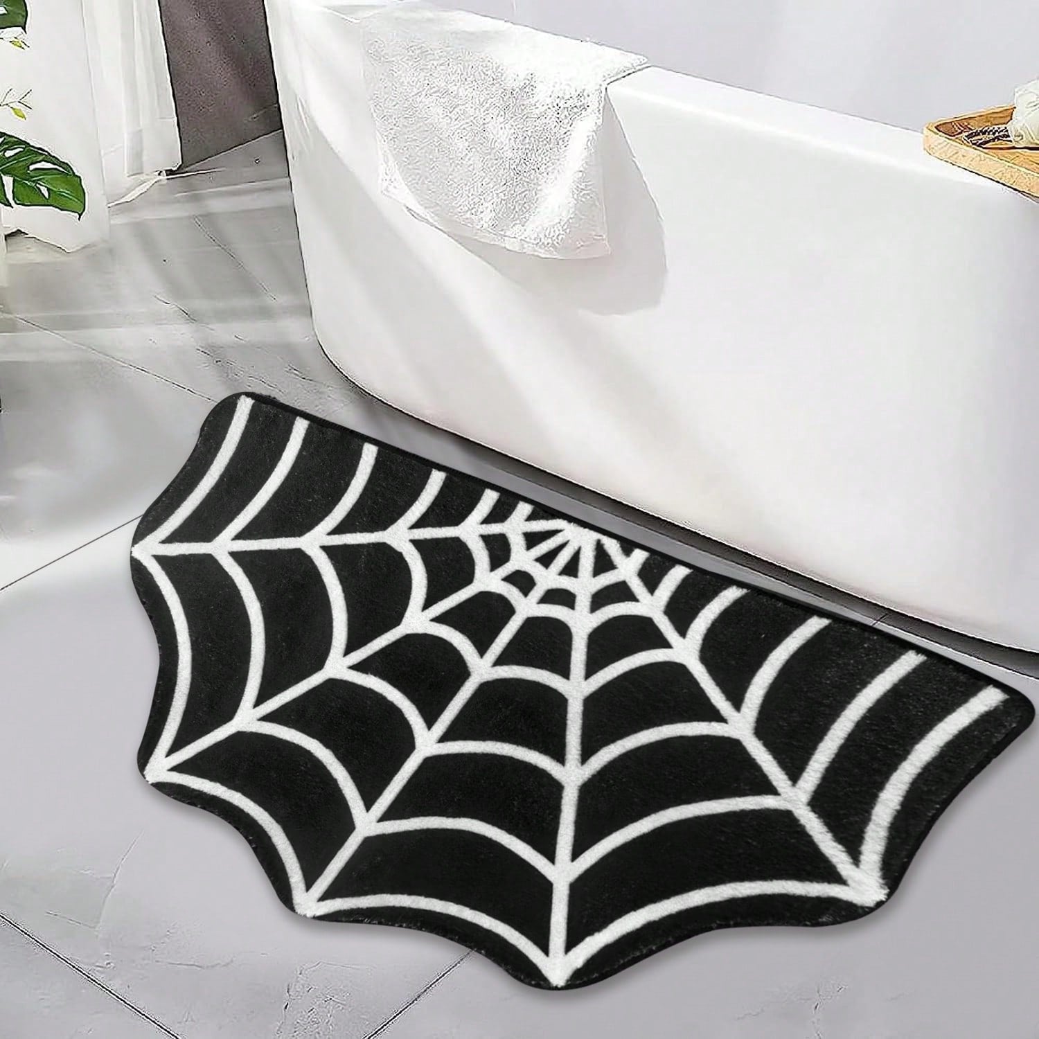 US Local Halloween Carpet 23.6x15.7 Inches And 31.5x19Inches Gothic Carpet Spider Web Indoor Rug Halloween Bathroom Mat Non-Slip Carpet Spider Web Bath Mat Suitable For Front Door, Bedroom, Living Room