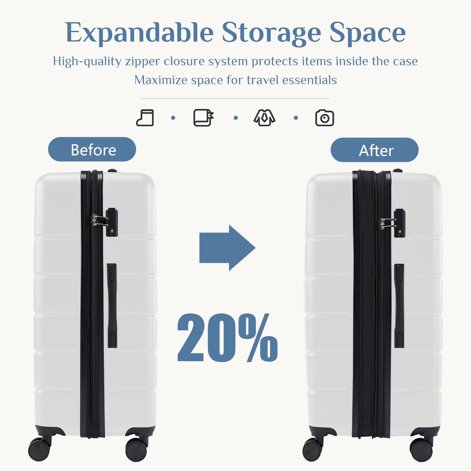 - ¡¾Secure & Stylish¡¿ This suitcase is both reliable and fashionable, featuring a TSA lock, increased security and convenience. The zipper closure ensures effortless closing. The surface of the suit case shell has a small grain texture with multiple horizontal stripes, simple and beautiful.