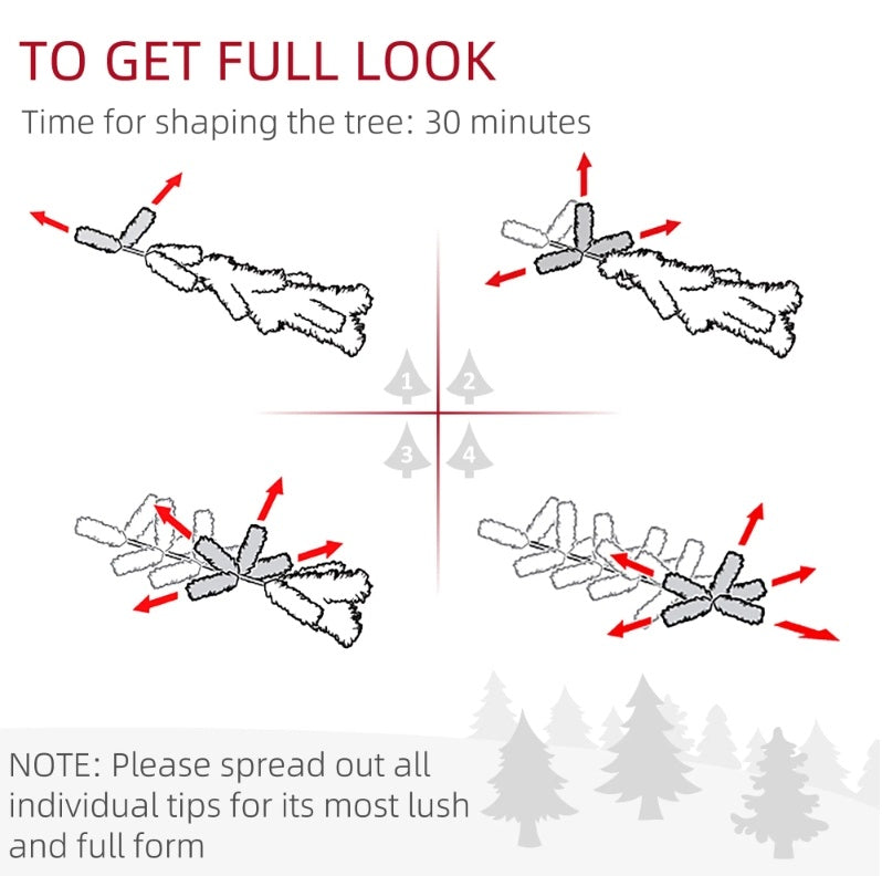 Artificial Christmas Tree Information: Overall Dimensions: 21.75" Dia. x 94.5"H. For best results, spend about 30-45 minutes fluffing the tree.
