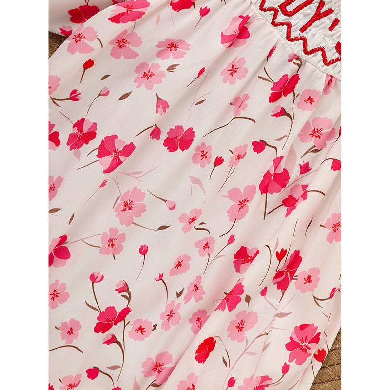 US Local Infant Girls' Floral Smocked Romper 'DADDY'S Girl' Embroidery Short Sleeve Crew Neck Adorable Princess Party Bodysuit