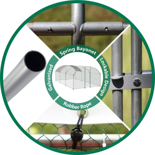 Large Coop Metal Chicken Passage with Waterproof & UV Cover, Dome Shape Walk-In Fence Coop for Outdoor & Yard Farm Use, 1" Pipe Diameter, 9.84' x 19.68' x 6.56'