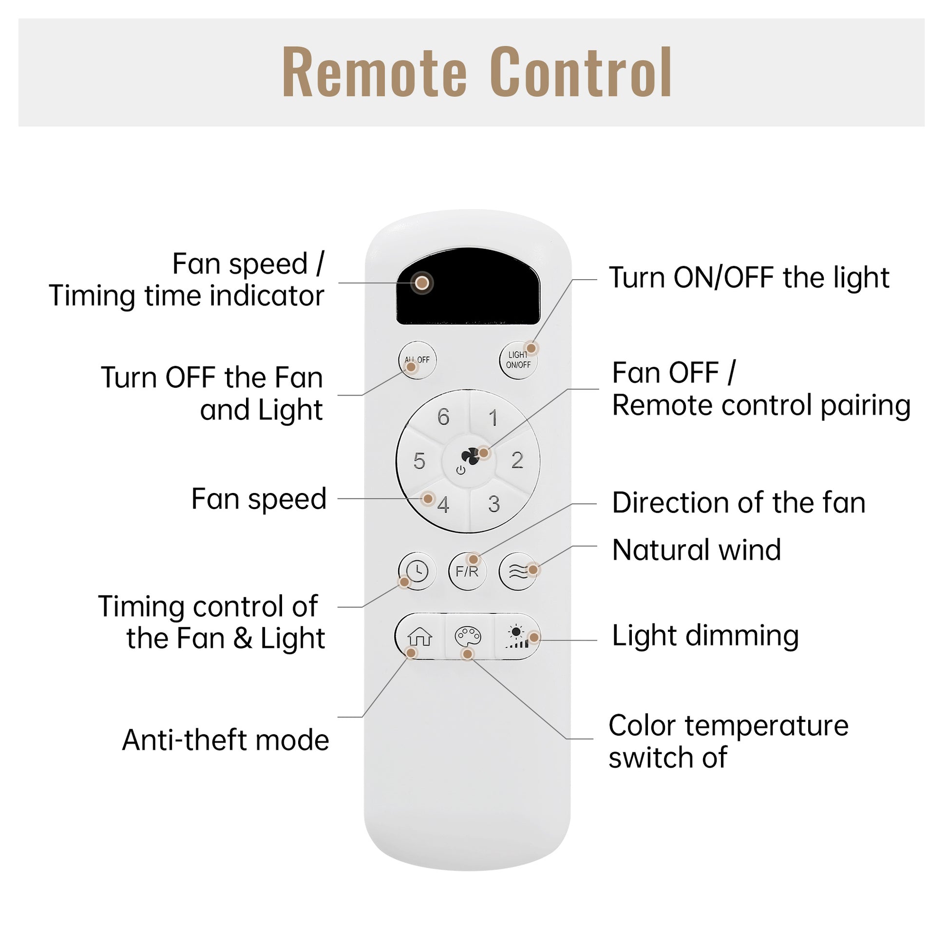 - 6-Speed Reversible Ceiling Fan: High quality solid wood with 3-leaf blades. The ceiling fan has two rotation modes: forward and reverse. It brings you cool winds in summer and enhanced air circulation in winter. It can keep you comfortable all year round.