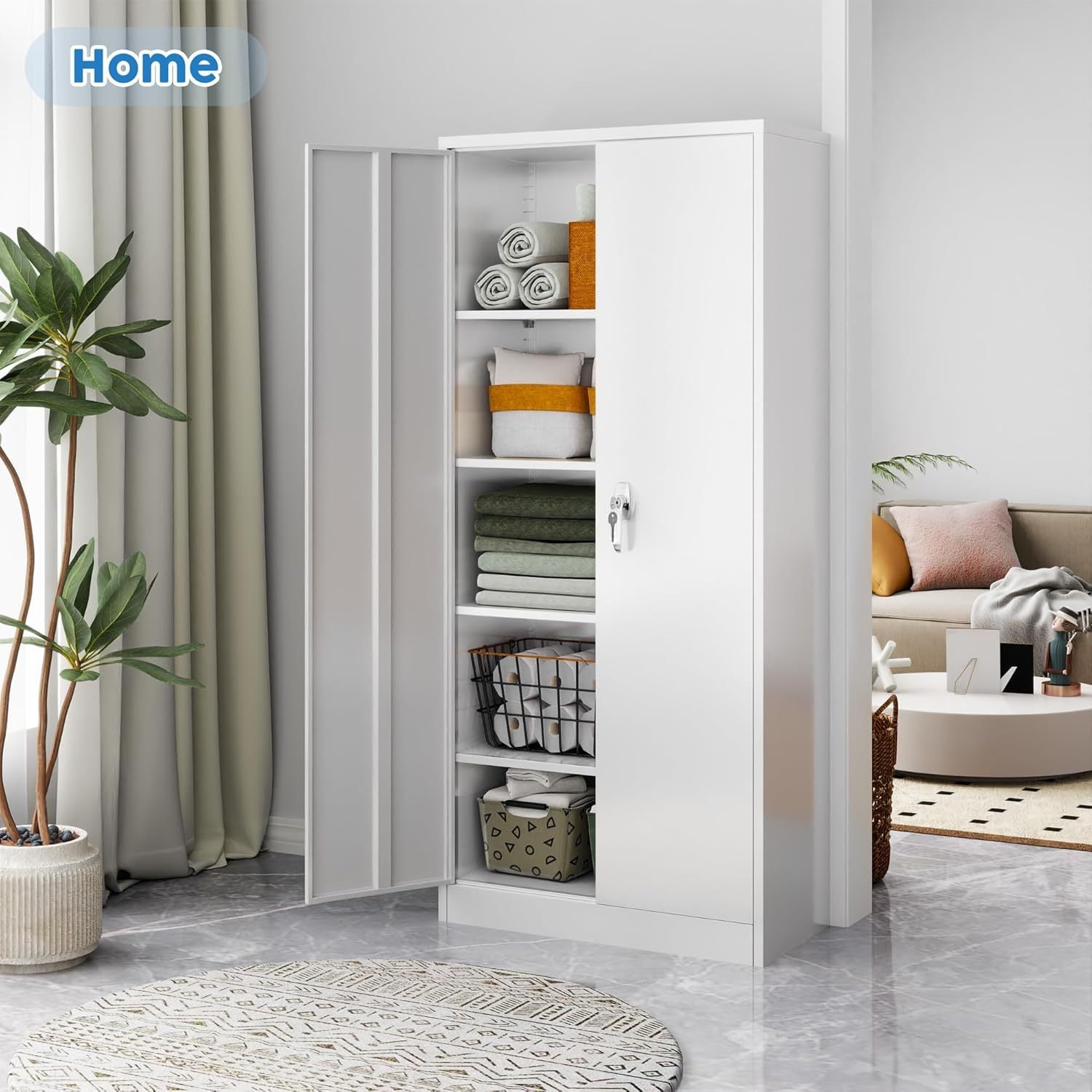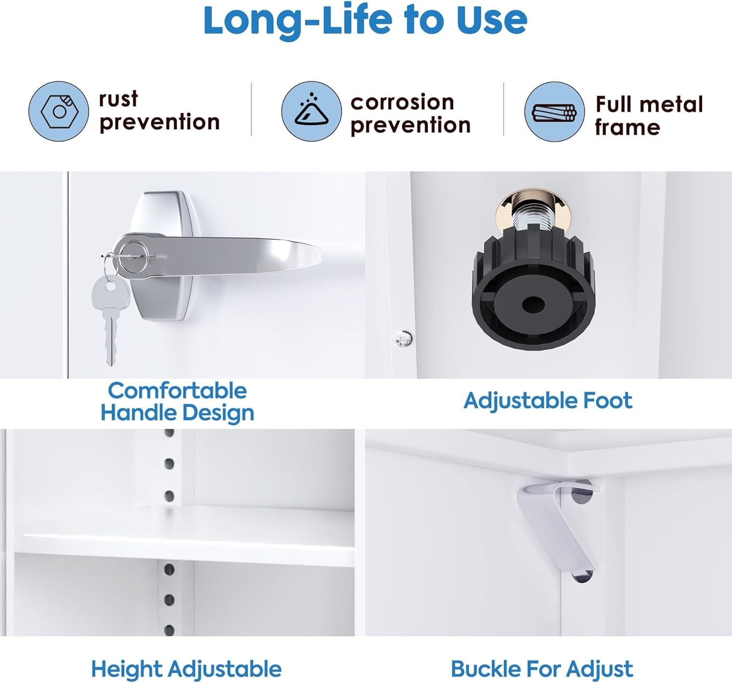- ¡¾Practical and safe design¡¿The metal storage cabinet is equipped with 4 adjustable shelves,which is adaptable and convenient.With a two-key lock on the door and a three-point locking system,there's no doubt you don't have to worry about the security and privacy of your belongings.
