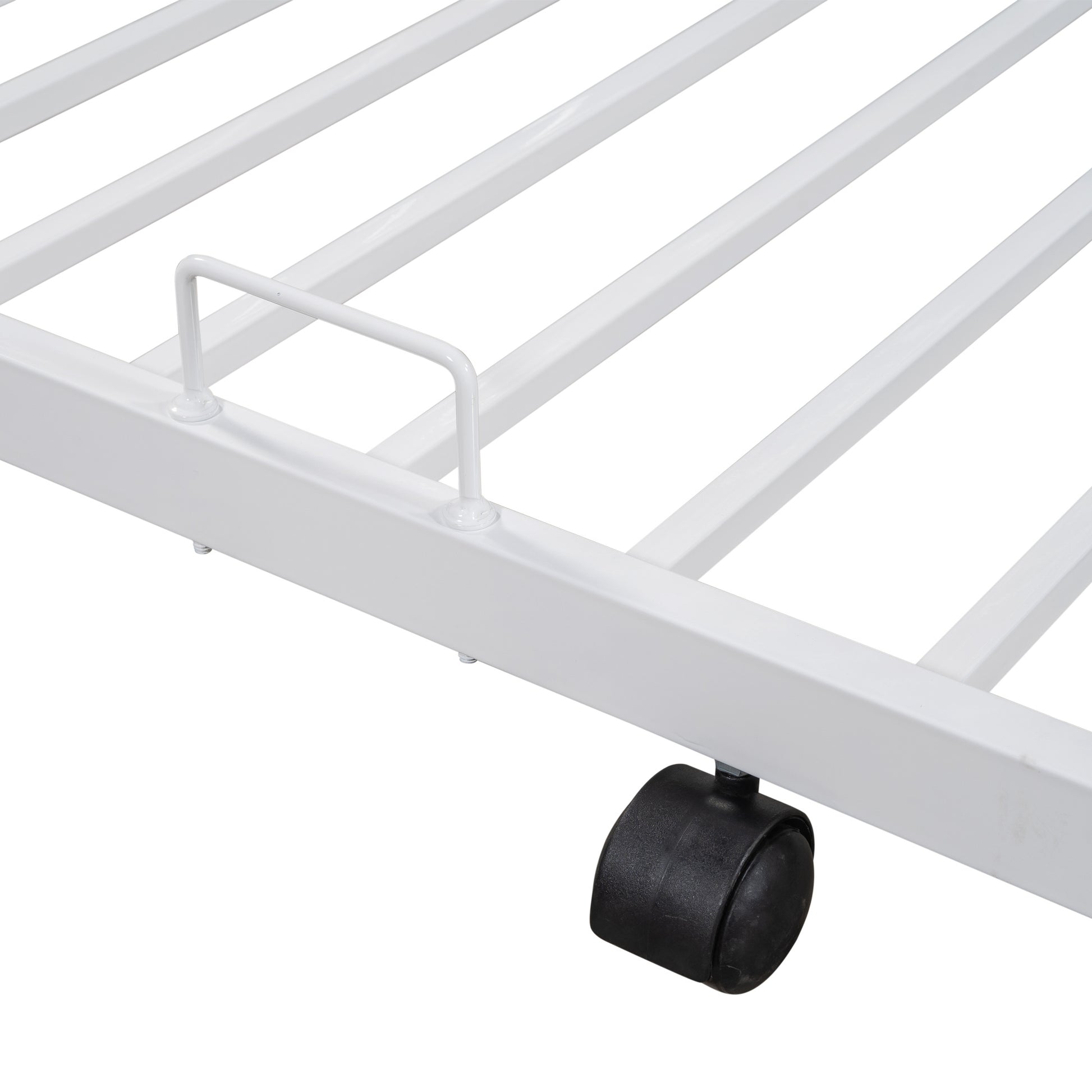 US Local Metal Double Bunk Bed With Rollers Heavy Duty Sturdy Metal Noise Reduction Safety Barrier Wood Trim