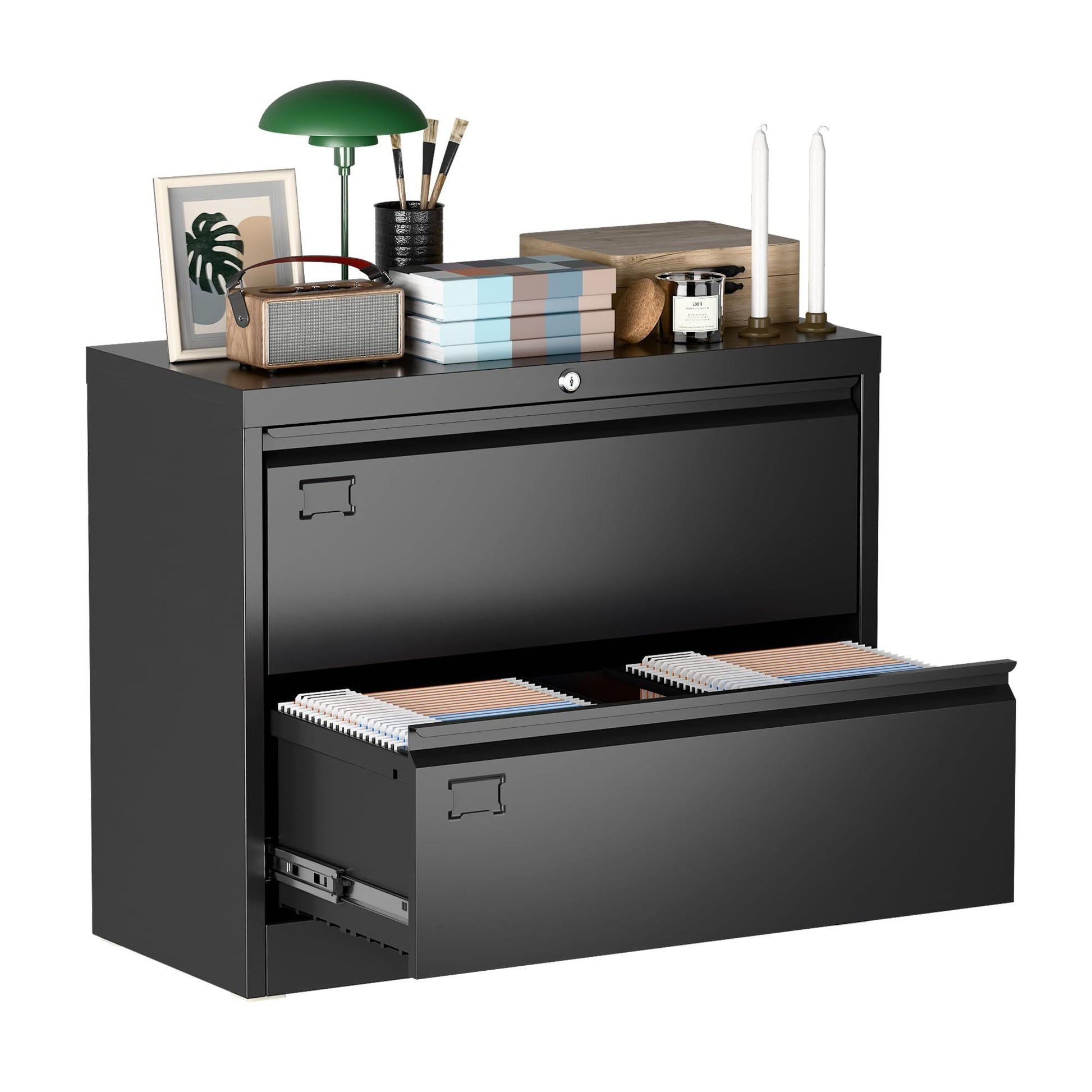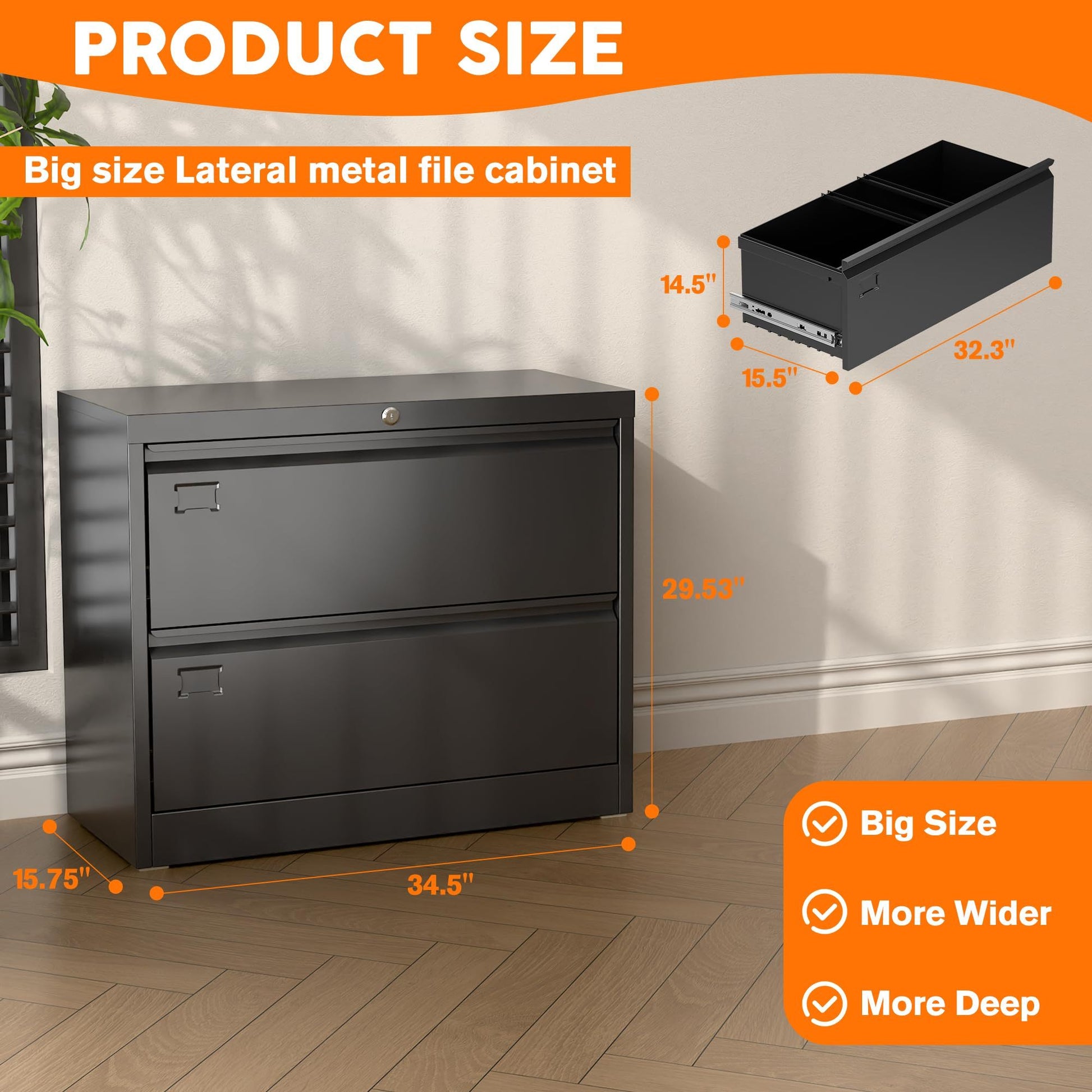 US Local Metal Lateral Filing Cabinet With 2 Drawers For Home Office, Locking Steel Wide File Storage Cabinet For Hanging Legal,Letter A4 Size, Assembly Required, Black