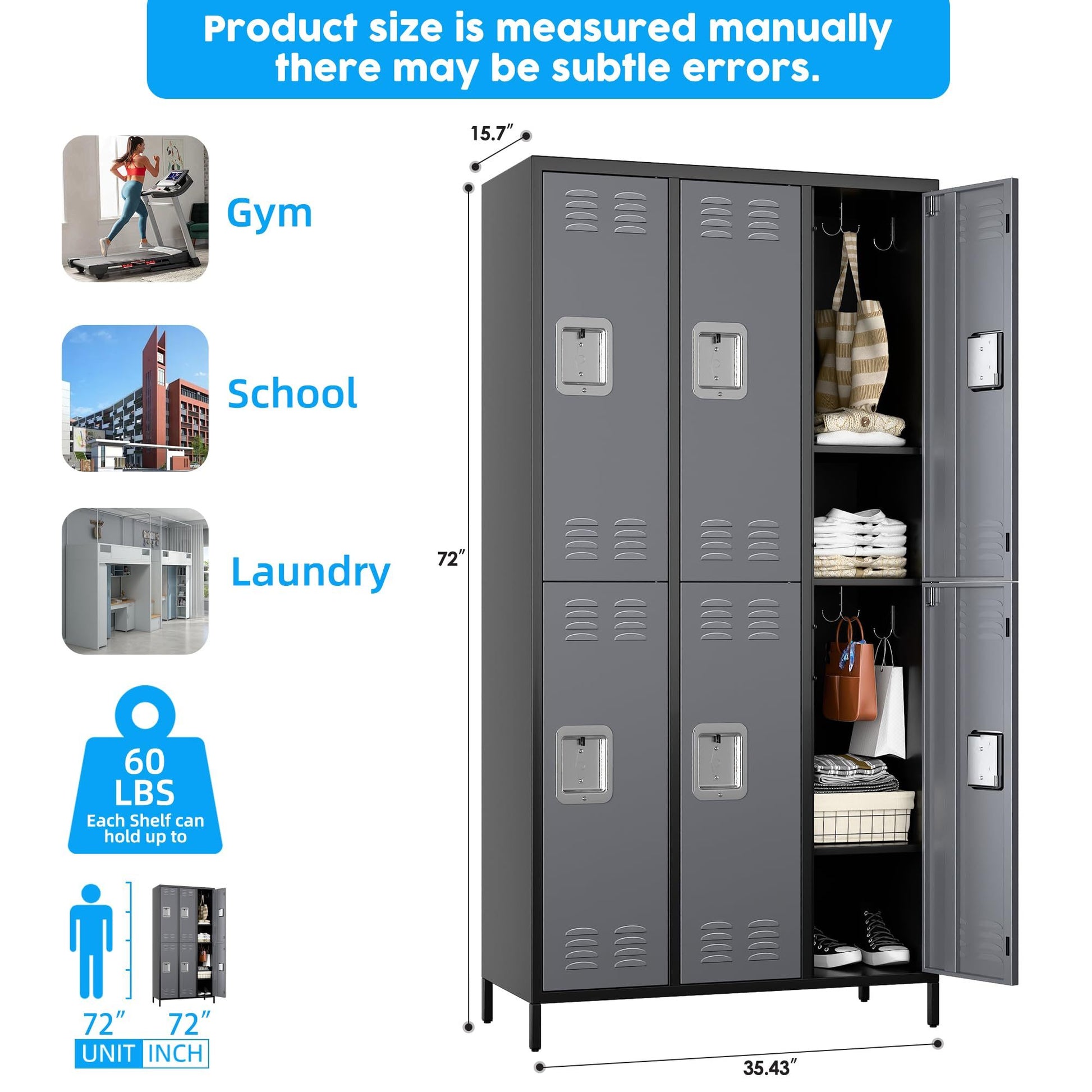 US Local Metal Lockers For Employees,Locking Metal Storage Locker With 6 Doors &18 Hooks For School Office Gym Bedroom,Assembly Required,Black And Dark Grey