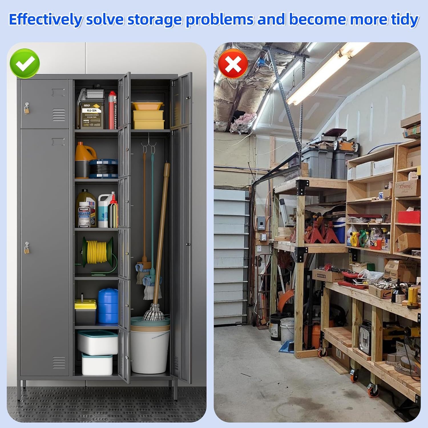 - Lockable Employees Lockers: Each locker compartment includes a steel hasp assembly and can accommodate combination or key padlock (not included), ensuring the security and privacy of your stored items. This feature provides peace of mind, knowing that your valuables are safely secured when not in use;