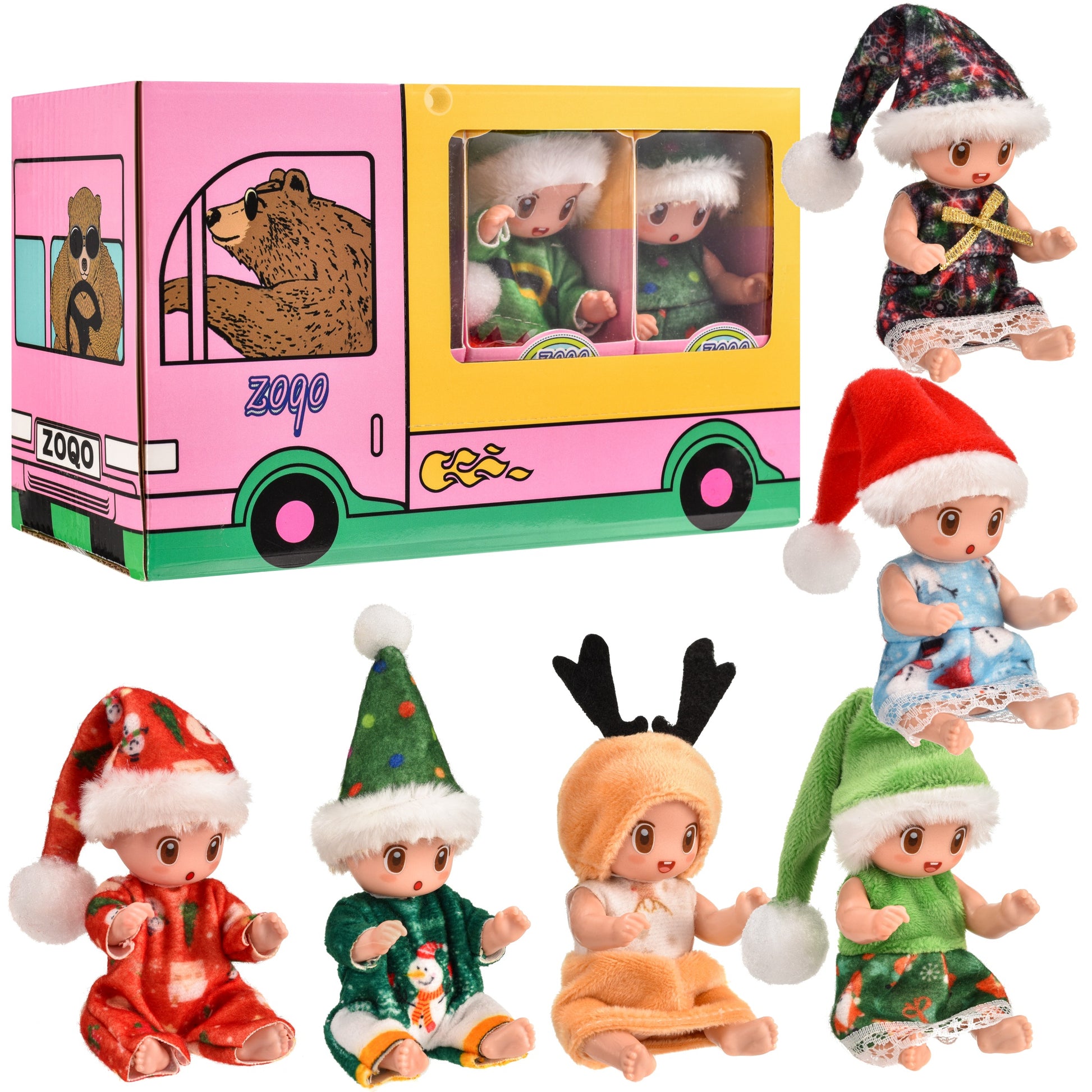 US Local Mini Reborn Baby Dolls, 6 Pcs Mini Doll Set, Washable Lifelike Baby Dolls, Animal Clothes Cute Tiny