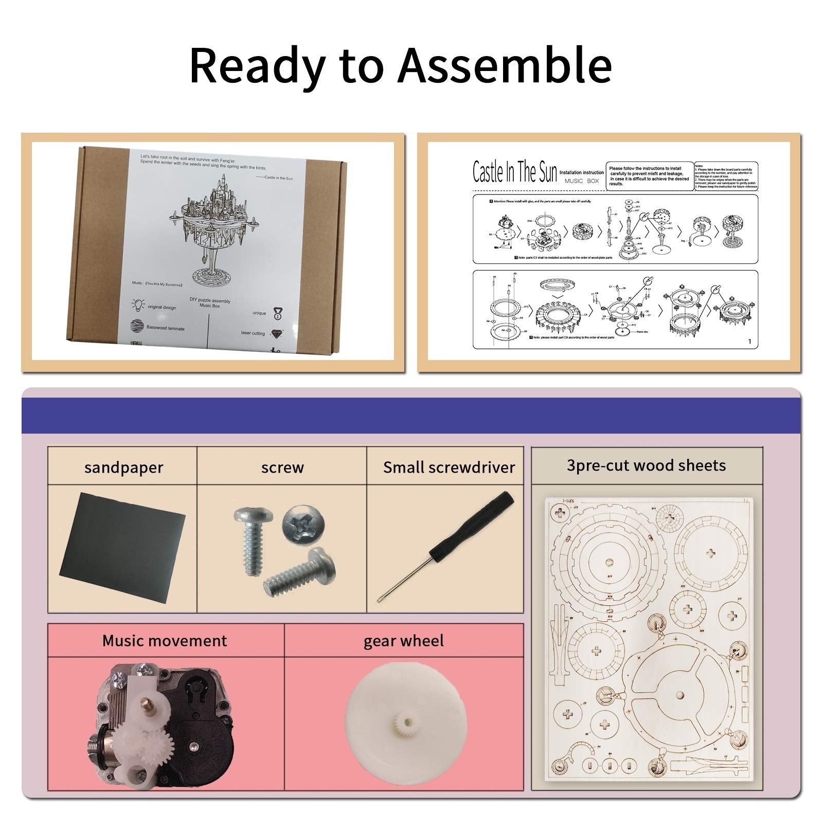 US Local MUSIC PARK 3D Wooden Puzzles Music Box Kits You Are My Sunshine Castle Building Model DIY Crafts Birthday Gift For Women