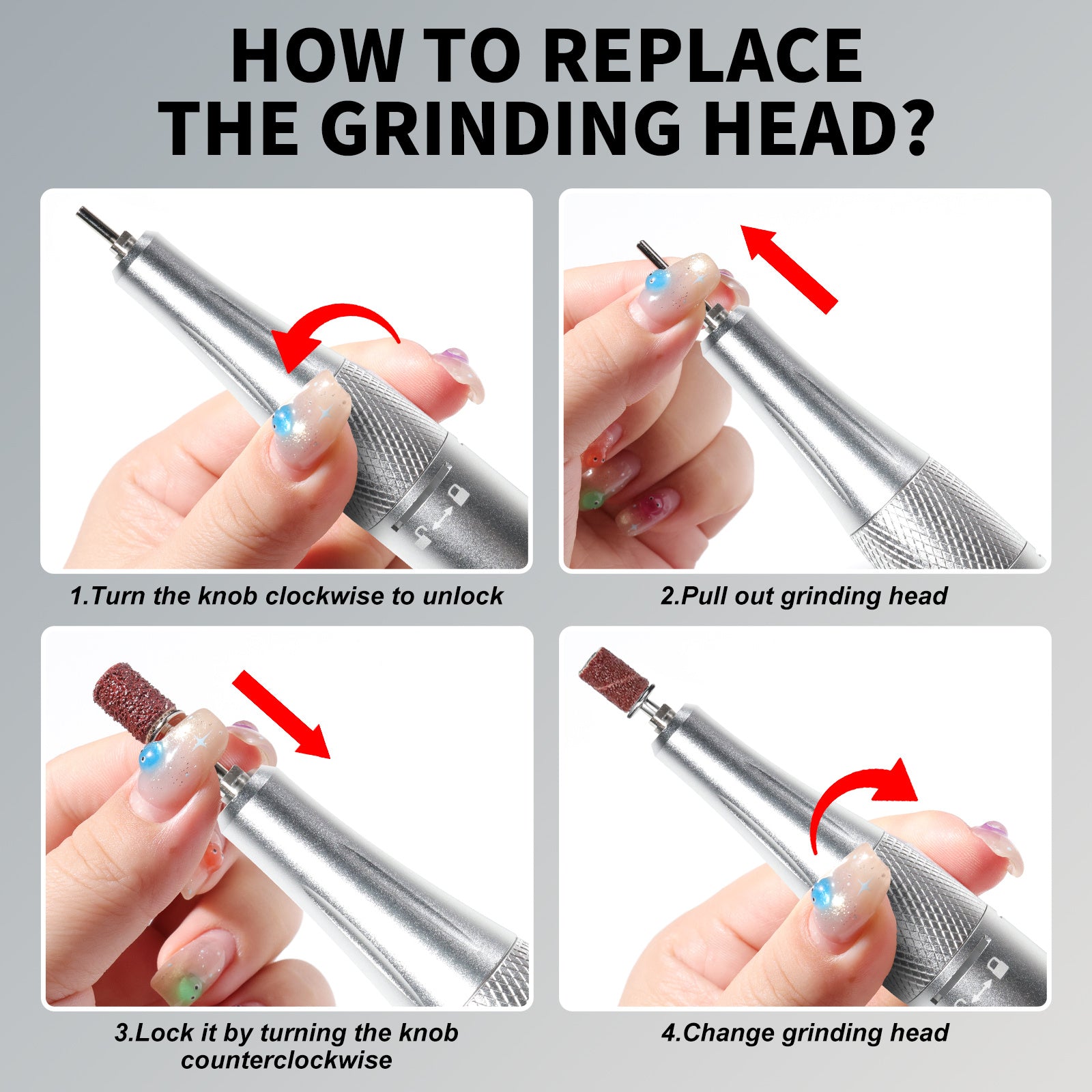 - Lightweight&Portable Nail Drill: The electronic file nail drill is made of aluminum alloy material, with a special texture to ensure a comfortable grip, and the belt clip of the body shell allows you to hang it on your belt and carry it with you. The vent heat dissipation design reduces heat generation and is almost unnoticeable during use. The electric nail drill has a base design that provides storage space for the drill bit and handle, keeping your workspace tidy and meeting your needs