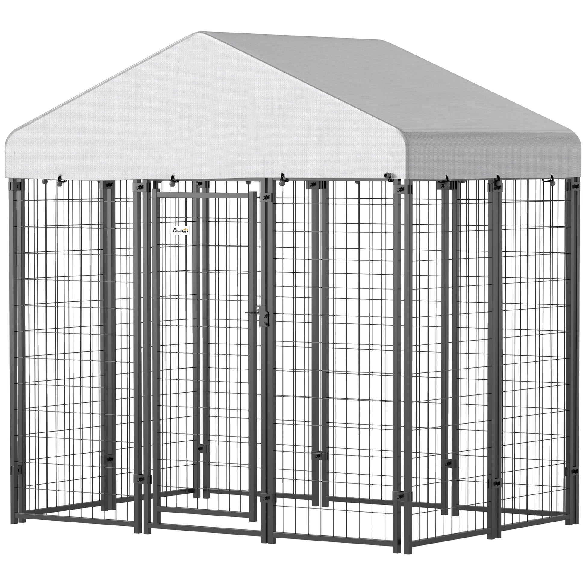 US Local Outdoor Dog Kennel With Roof With Escape-proof Lock, UV-Resistant & Waterproof Cover, 5.9 X 4 X 6, Silver