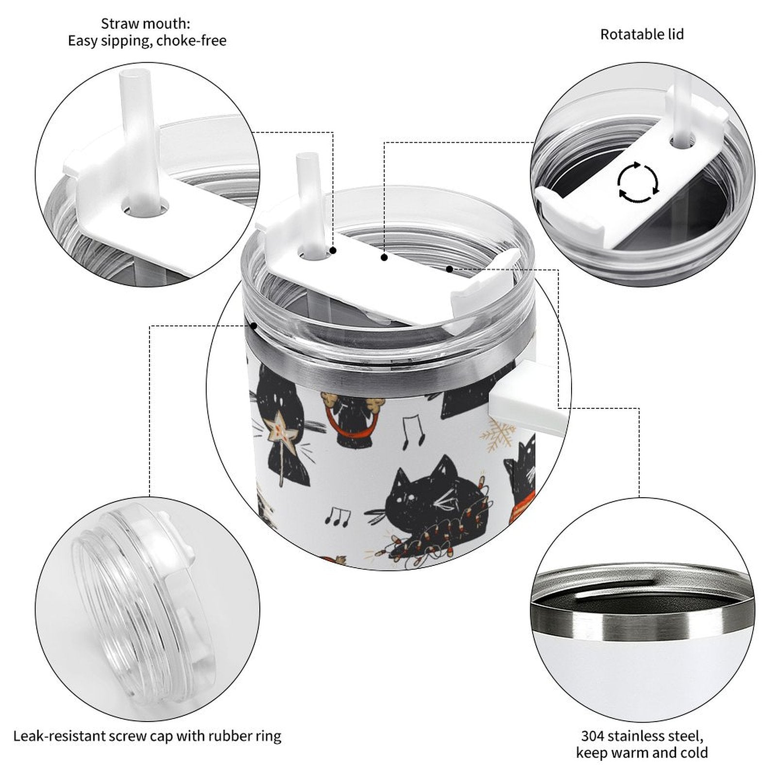 PHDT00085 POD US Local Tumbler 40 oz Large Capacity Car Cup Christmas, Black Cat